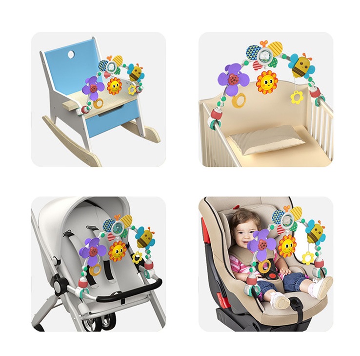 ベッドメリー ぶら下げおもちゃ ベビーカーおもちゃ アーチ型 ガラガラ ベビーおもちゃ 寝かしつけ 知育玩具 ベビーカー用振り子 ハイローチェア ベビーベッド チャイルドシート 取り付け簡単 多機能 室内 屋外 赤ちゃん遊び お誕生日 出産祝い 贈り物
