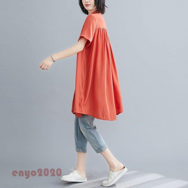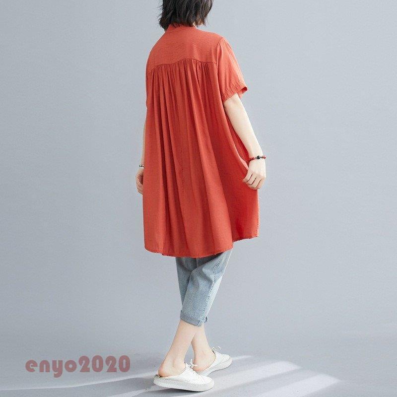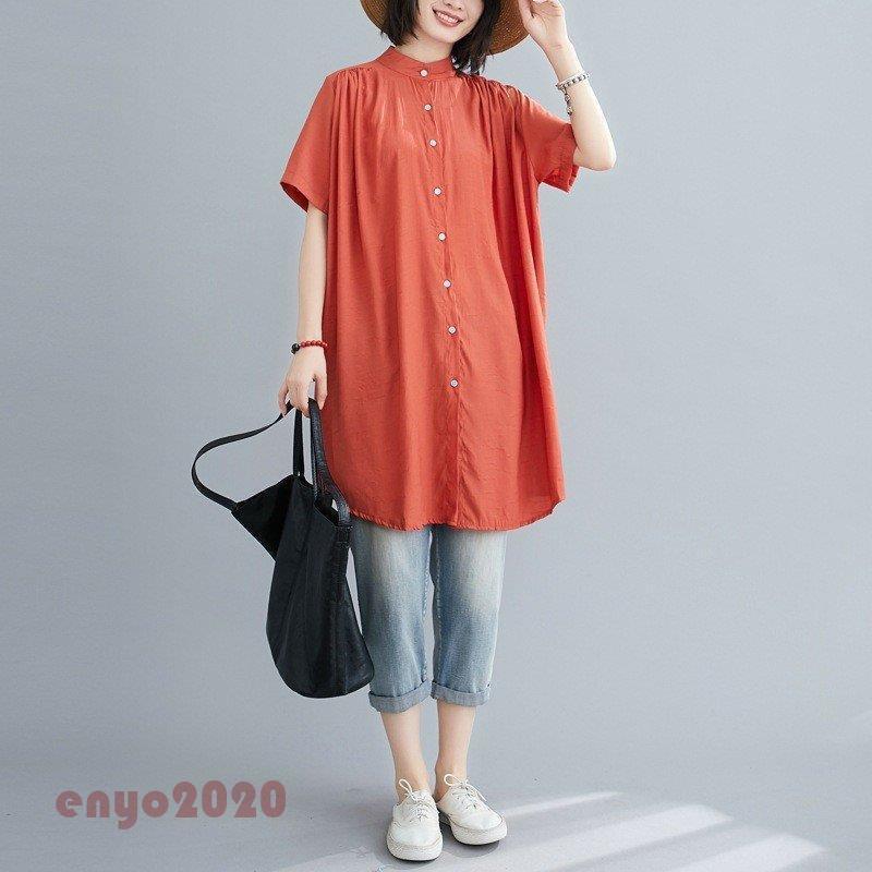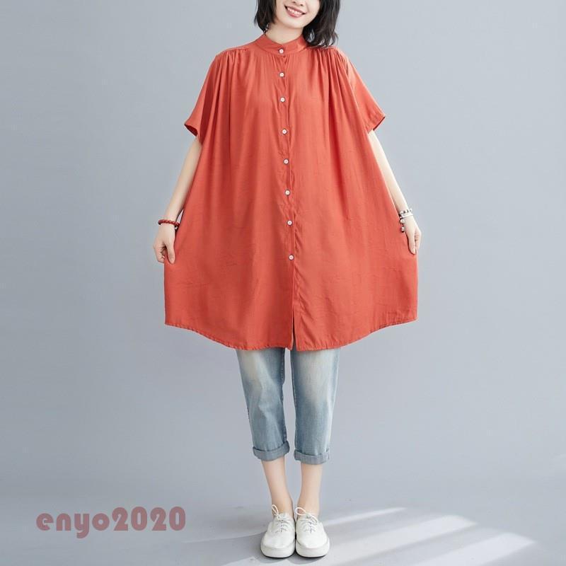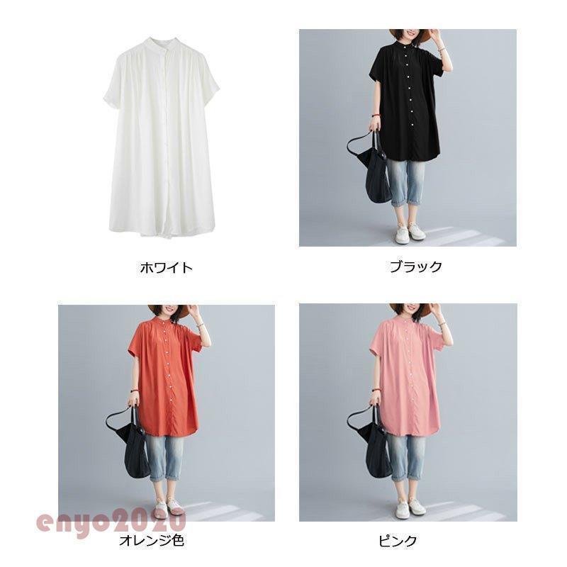 シャツ ブラウス ロングシャツ トップ レディースファッション 通販 COLOR1ホワイト COLOR2ブラック COLOR3オレンジ COLOR4ピンク