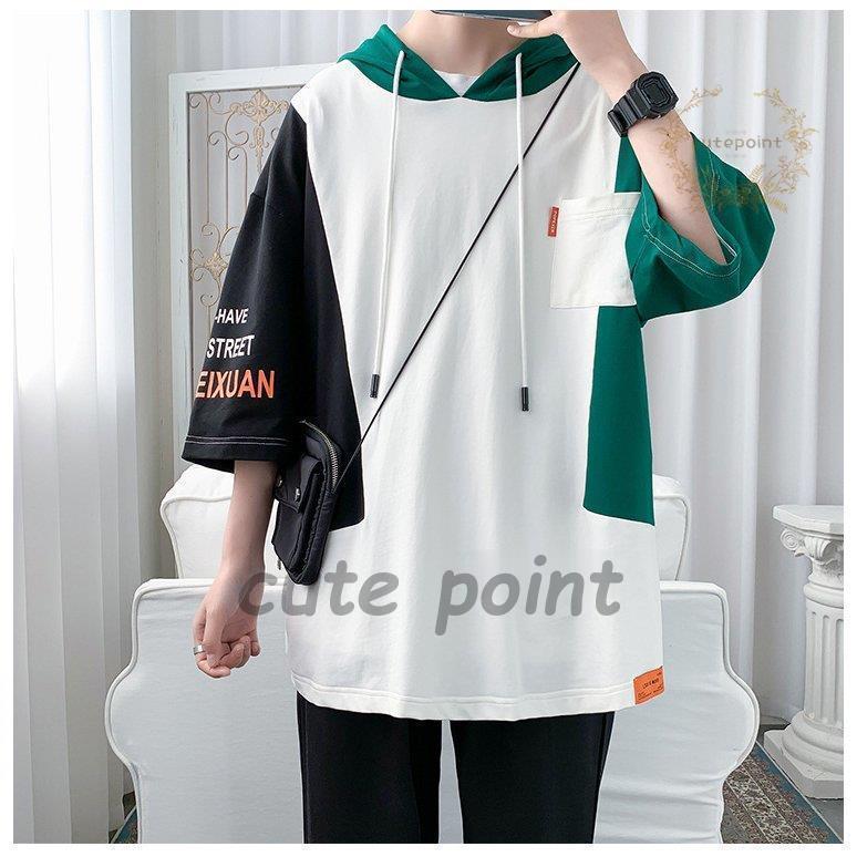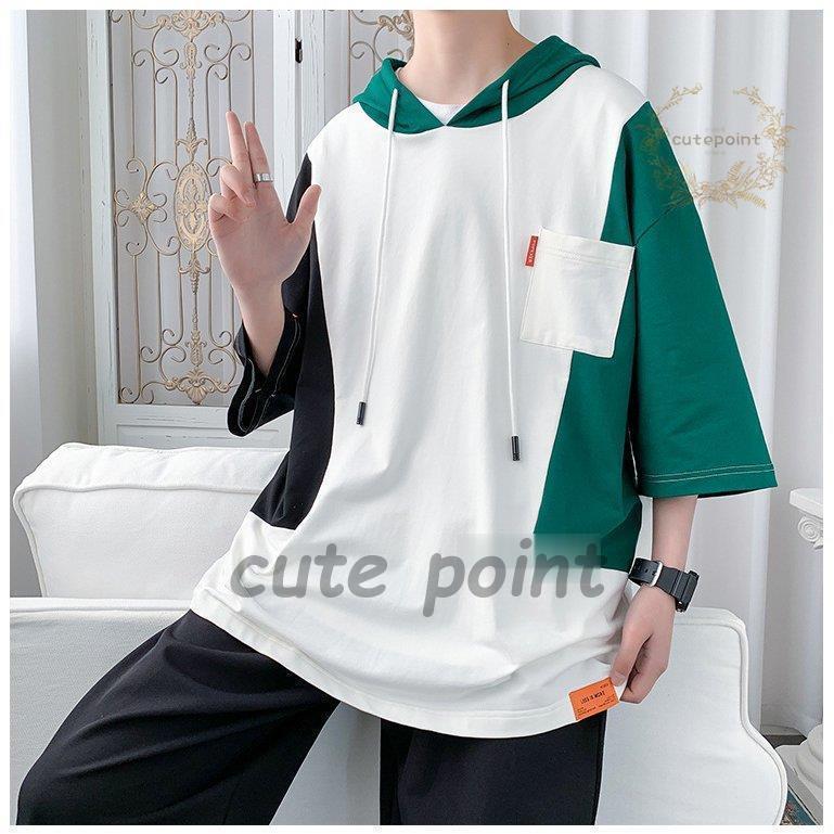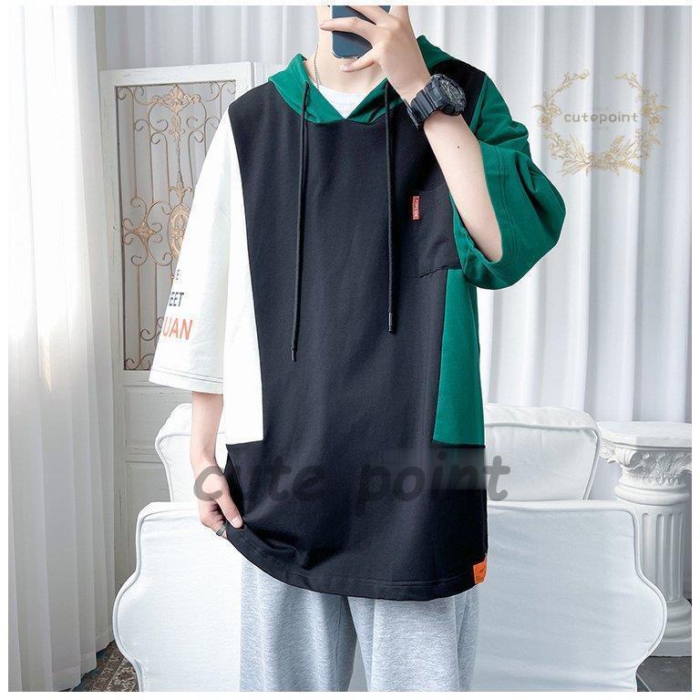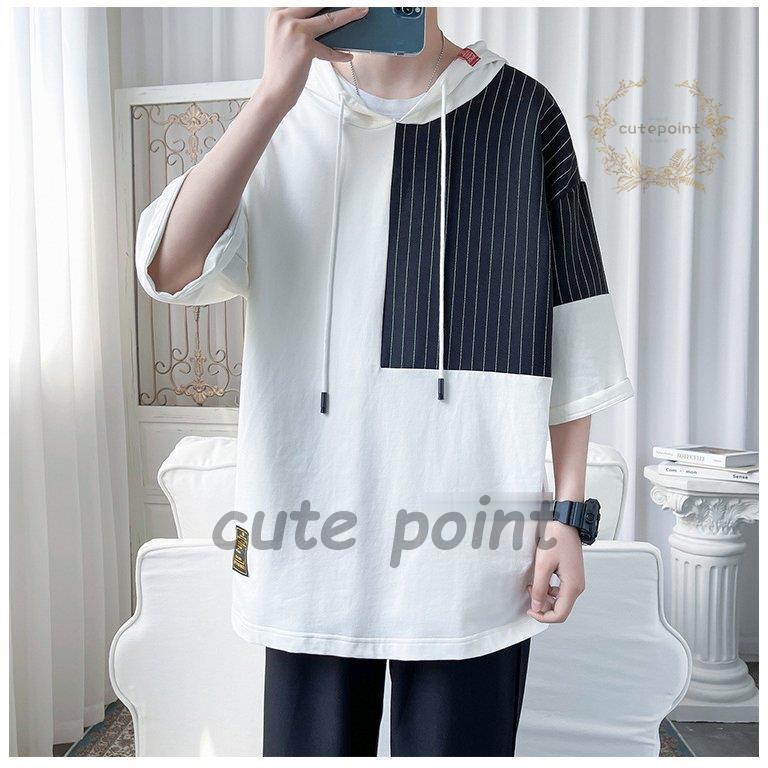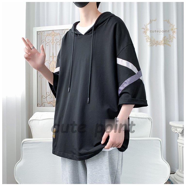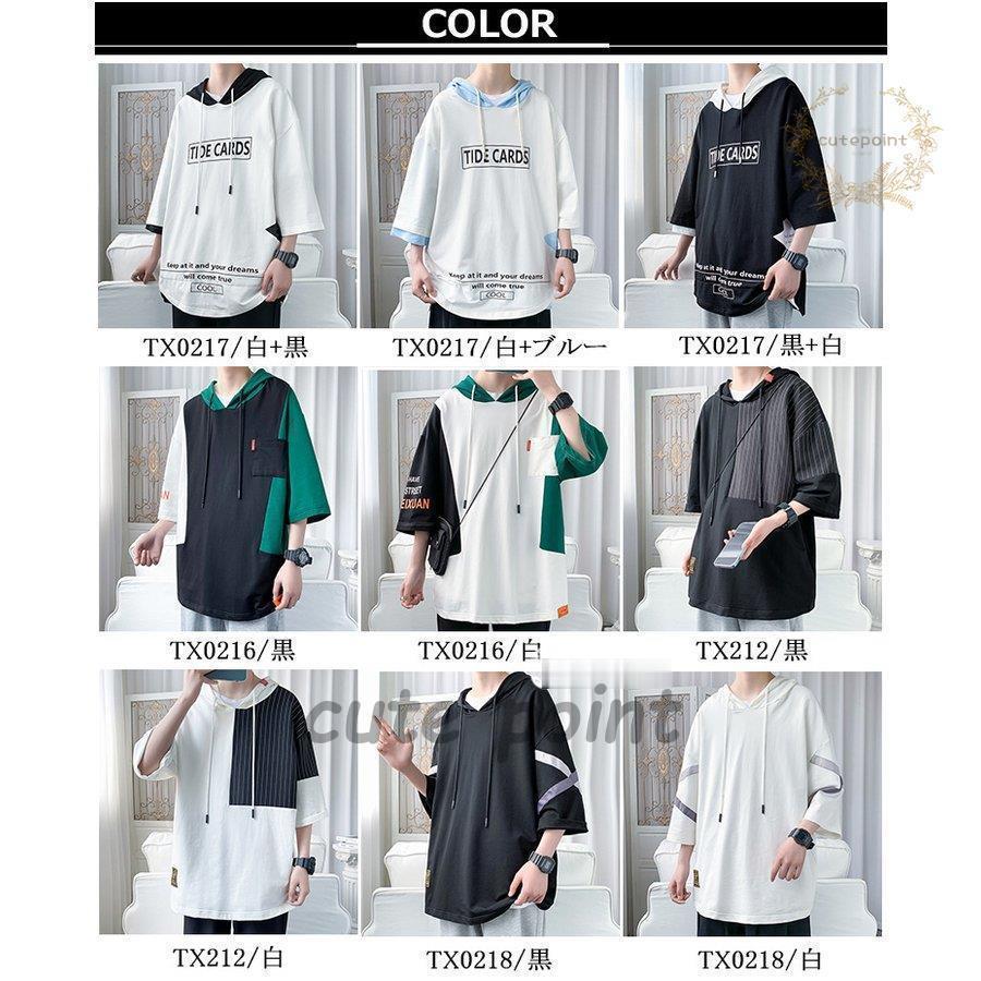 大きくサイズ パーカー メンズ 半袖パ トップス Tシャツ カットソー 特集 217白+黒 217白+ブルー 217黒+白 216黒 216白 212黒 218白 218黒 M L XL 2XL 3XL 4XL 5XL 6XL