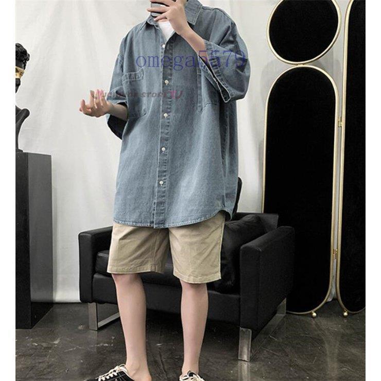 デニムシャツ メンズ デニム 半袖 夏 メンズファッション 通販 ライトブルー ダークブルー M L XL 2XL 3XL
