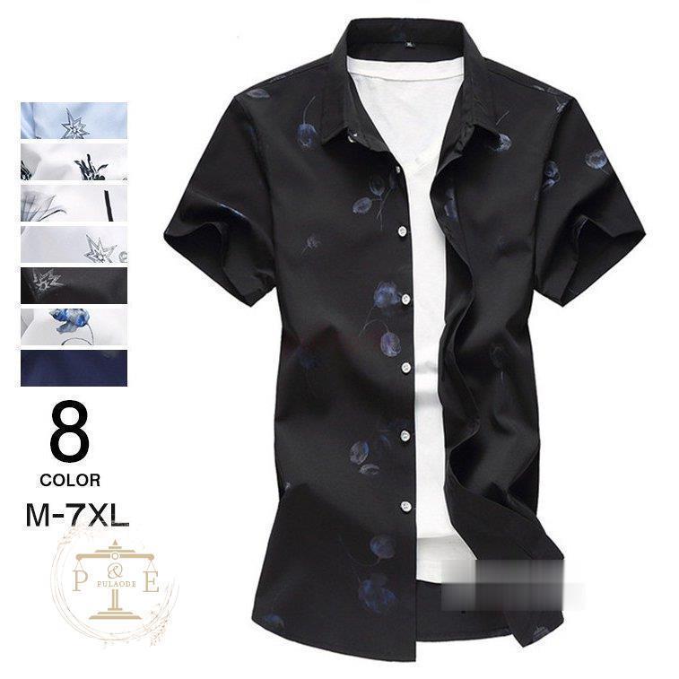花柄シャツ メンズ アロハシャツ カジ トップス Tシャツ カットソー 人気 6938A 6938B 6937ネイビー 6937黒 6937白 M L XL 2XL 3XL 4XL 5XL 6XL