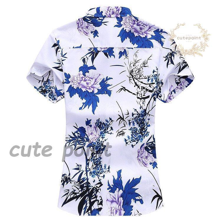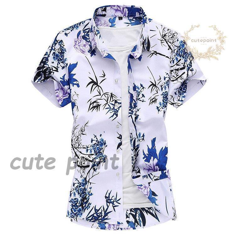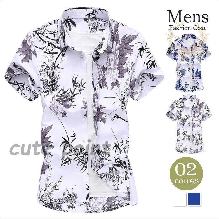 花柄シャツ メンズシャツ トレンド カ メンズファッション 人気 ホワイト ブルー M L XL 2XL 3XL 4XL 5XL 6XL 7XL
