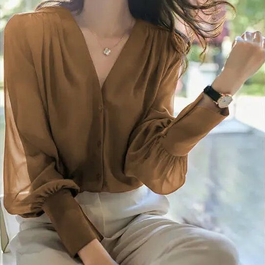 レディース ブラウス Vネック ロングシャツ 長袖シャツ ロングスリーブ トップス カジュアル キュート 可愛い フェミニン きれいめ 上品 エレガント おしゃれ グリーン ワインレッド ブラック ブラウン M L XL 2XL 3XL 4XL 大きいサイズ