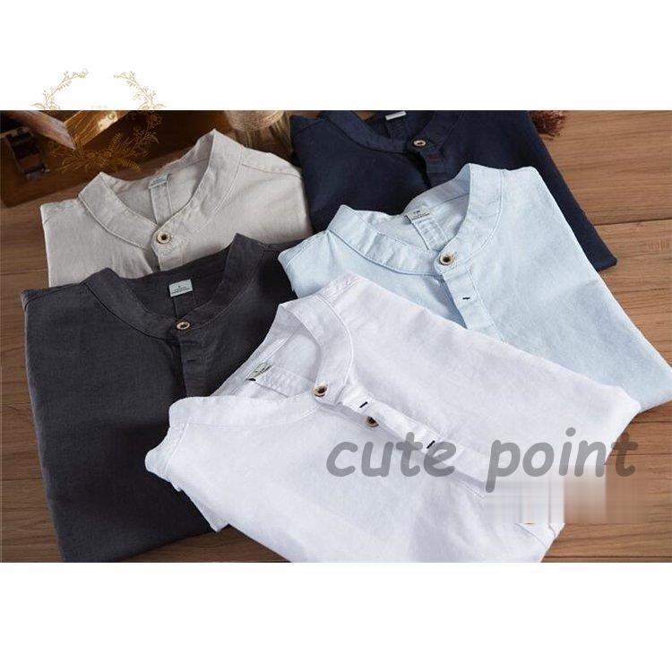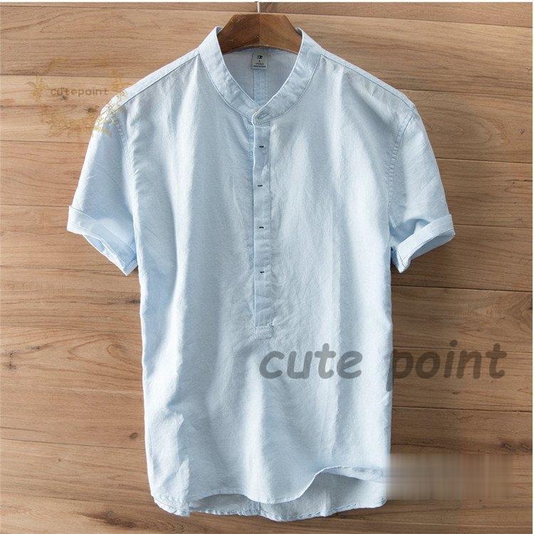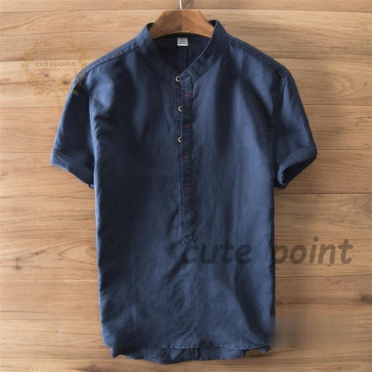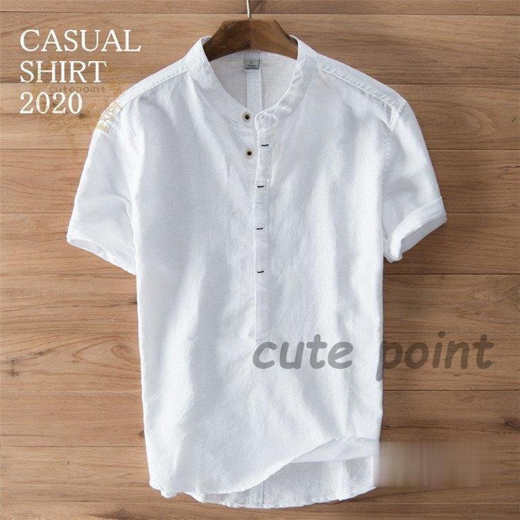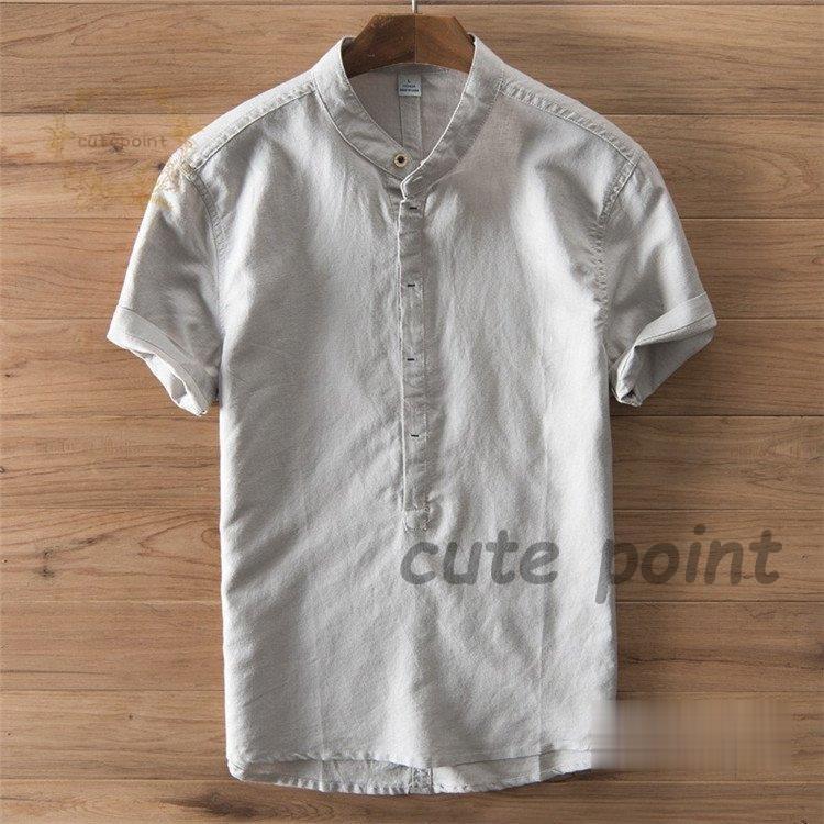 リネンシャツ メンズ 半袖 無地 麻混 メンズファッション 通販 ホワイト ブルー ネイビー グレー M(S相当) L(M相当) XL(L相当) 2XL(XL相当) 3XL(2XL相当)