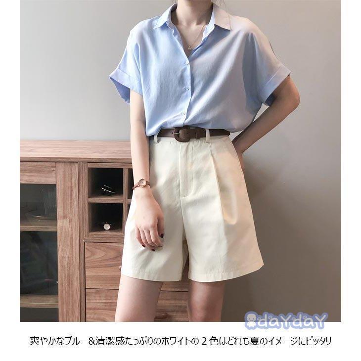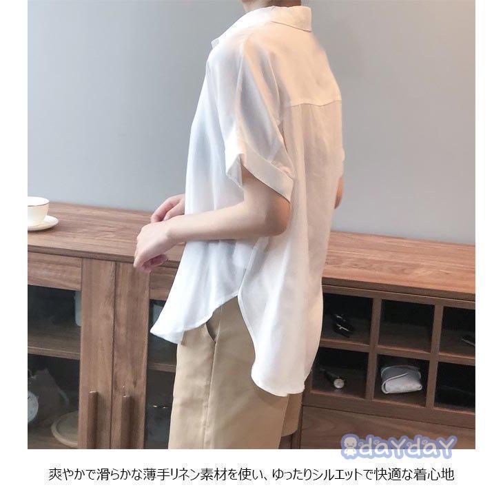 半袖シャツ レディース リネンシャツ レディースファッション 特集 ブルー ホワイト M L