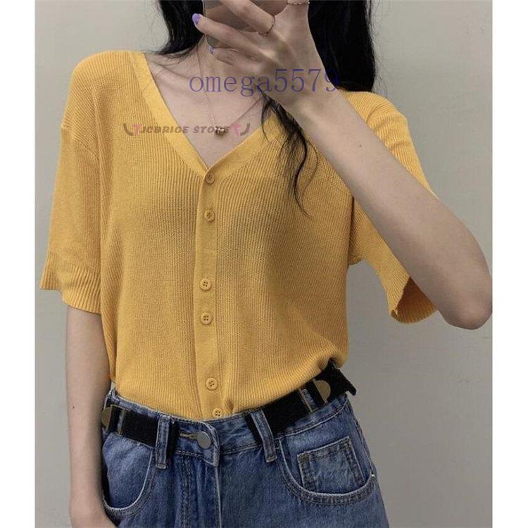 カーディガン レディース ニット 半袖 レディースファッション 通販 ホワイト ブラック イエロー パープル グリーン ブルー ベージュ レンガ S M L XL