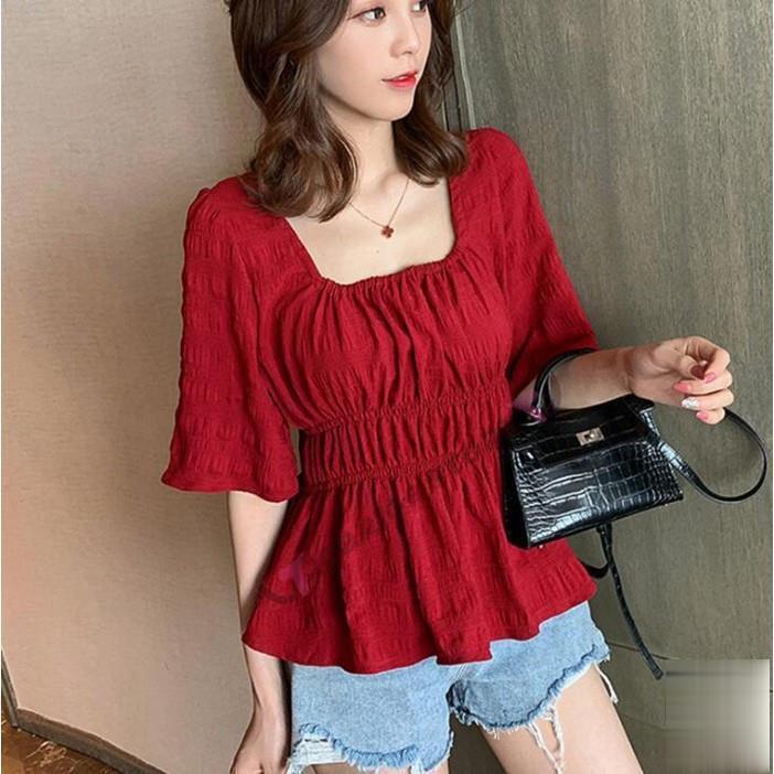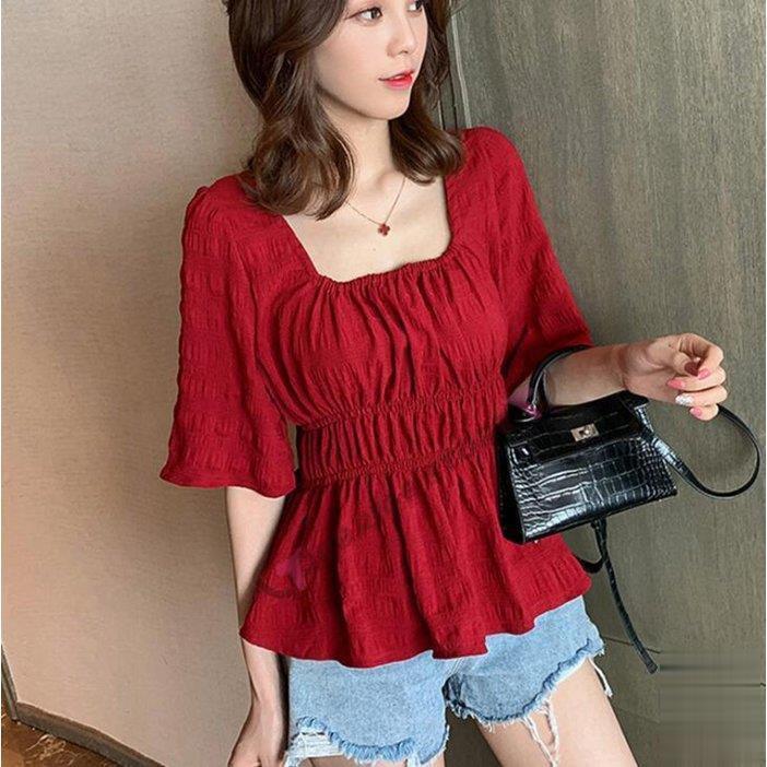 トップス レディース ブラウス スクエ トップス Tシャツ カットソー 人気 ホワイト レッド M L XL 2XL
