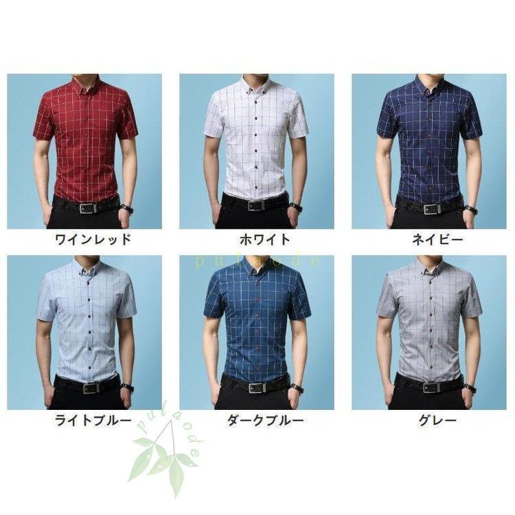 ワイシャツ 半袖 チェック柄 格子柄シ トップス Tシャツ カットソー 人気 ライトブルー ダークブルー ネイビー ワインレッド ホワイト グレー M L XL 2XL 3XL 4XL 5XL