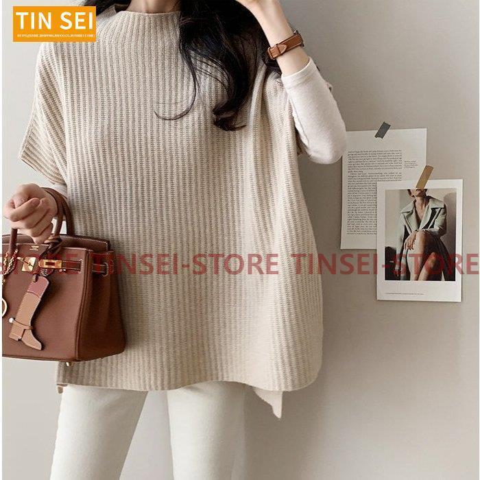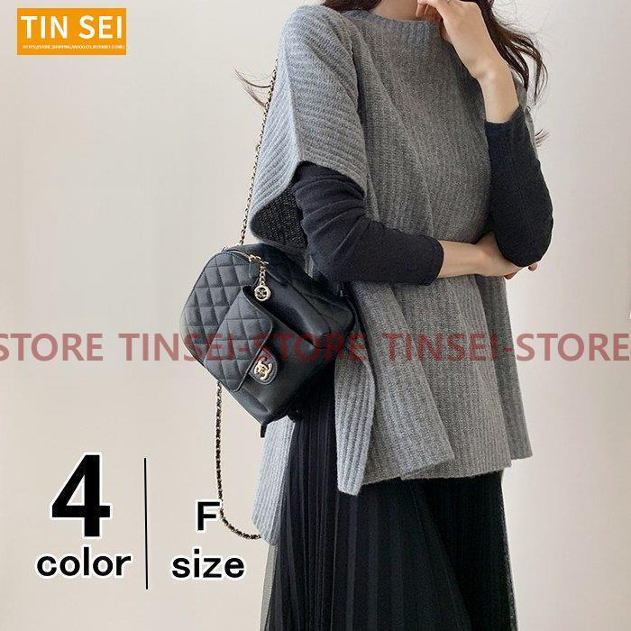 ニット ベスト レディース 半袖 重ね トップス Tシャツ カットソー 通販 ブラック グレー オフホワイト ベージュ