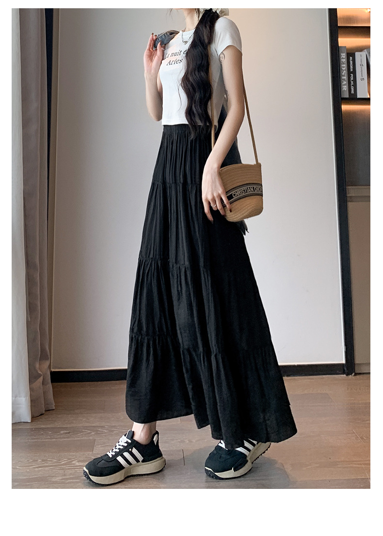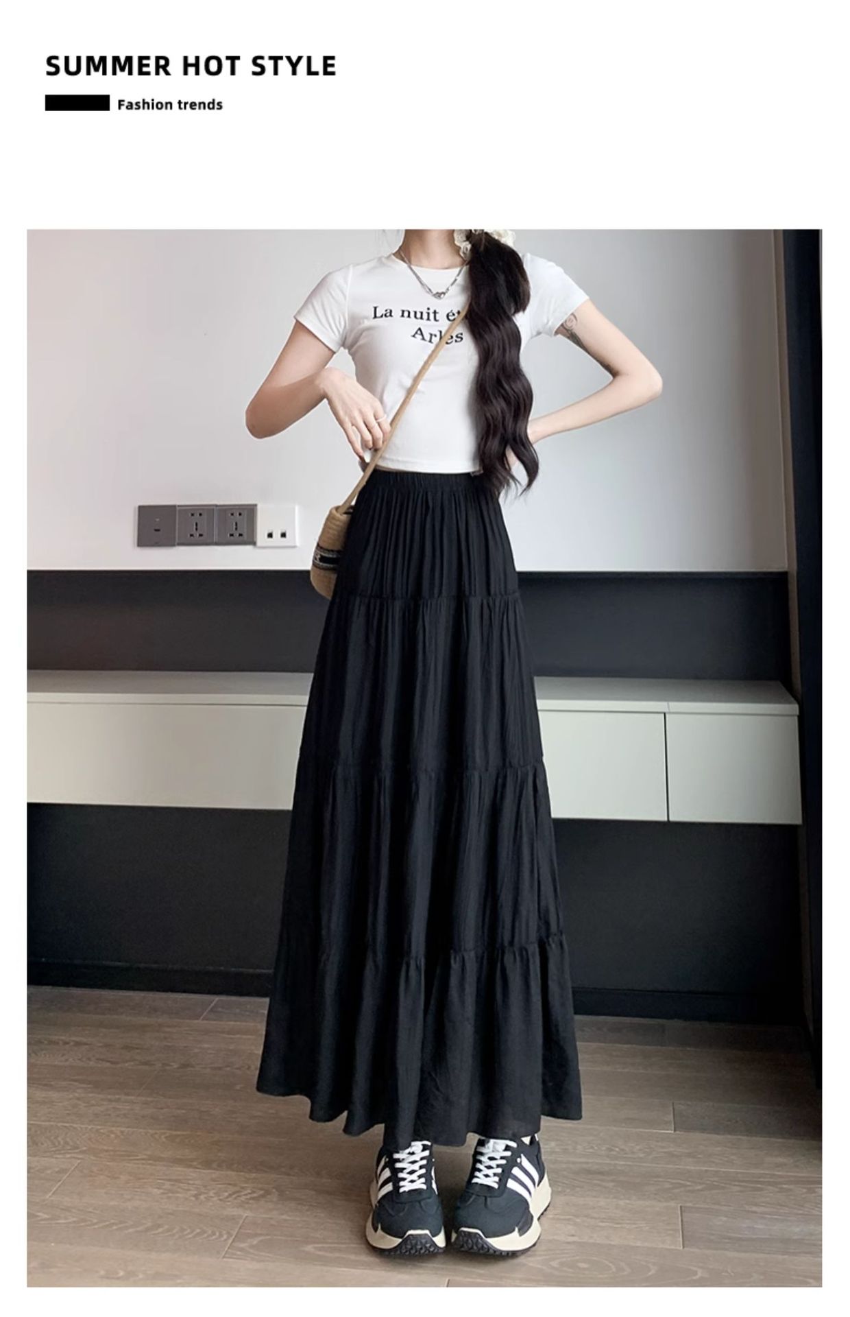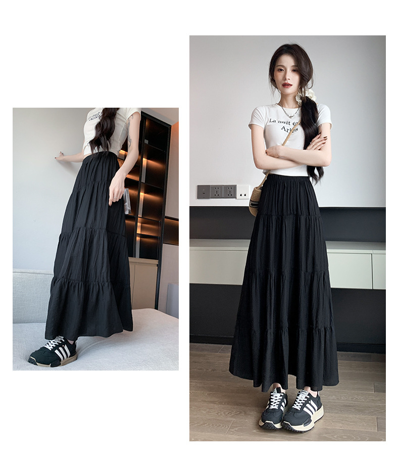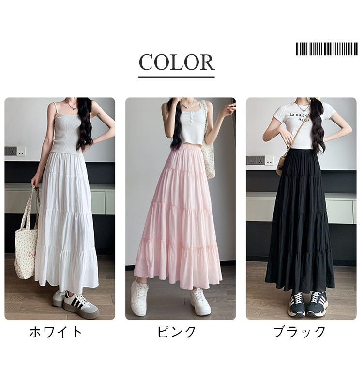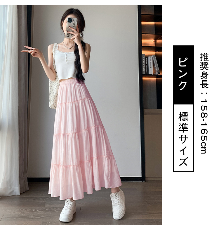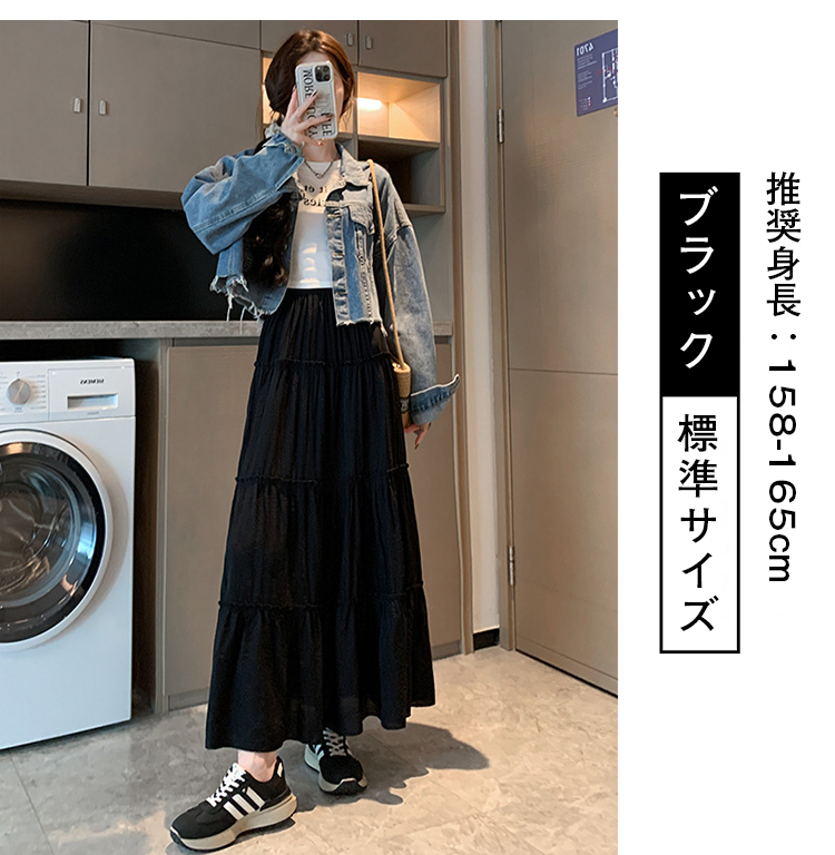 原宿系 シンプル 無地 スカート ティアードスカート ボトムス レディース 無地 ロング丈マキシ丈スカート ウエストゴム ファッション 上品 きれいめ 大人 着痩せ 春服 秋服 カジュアル