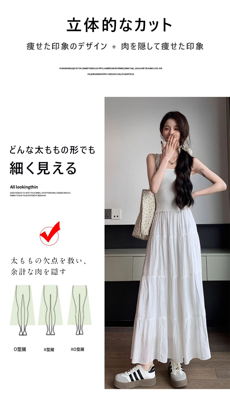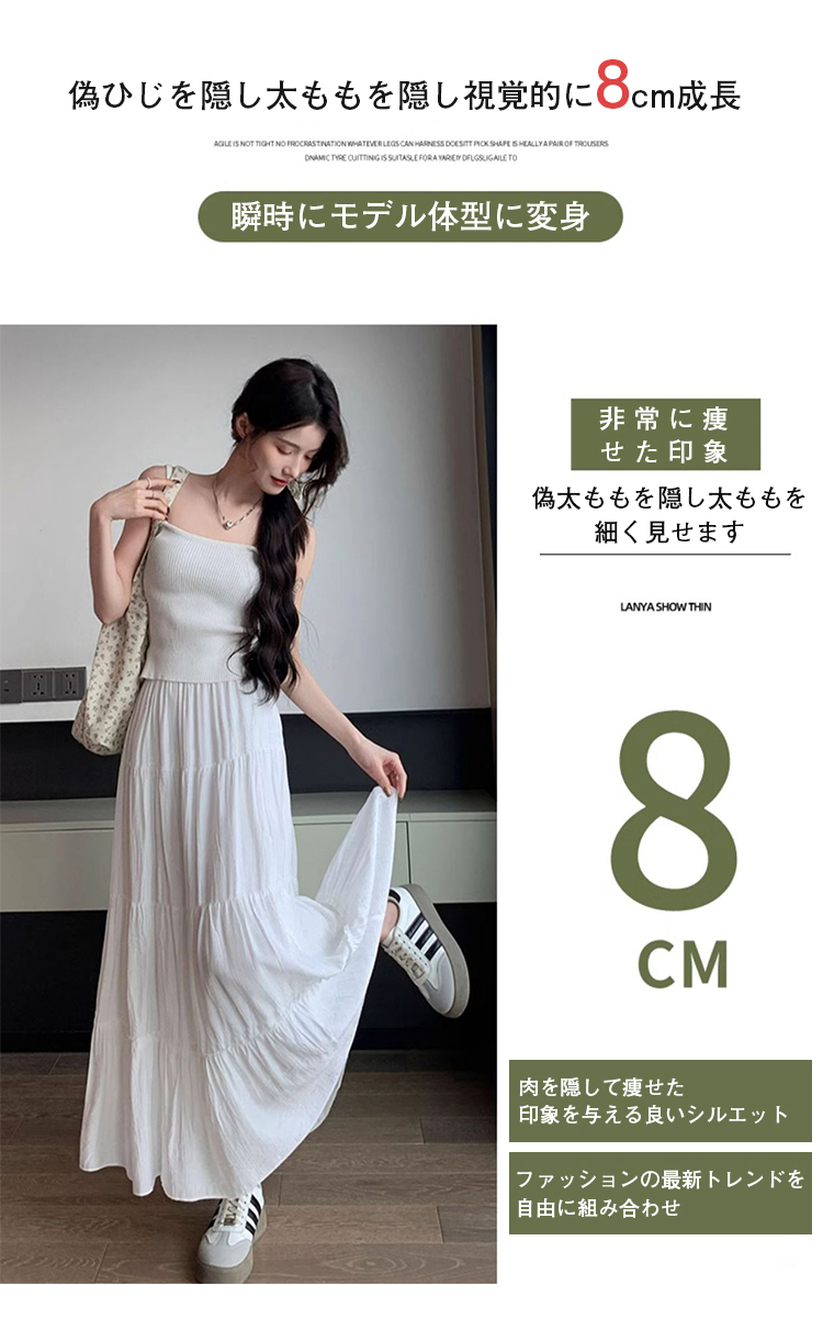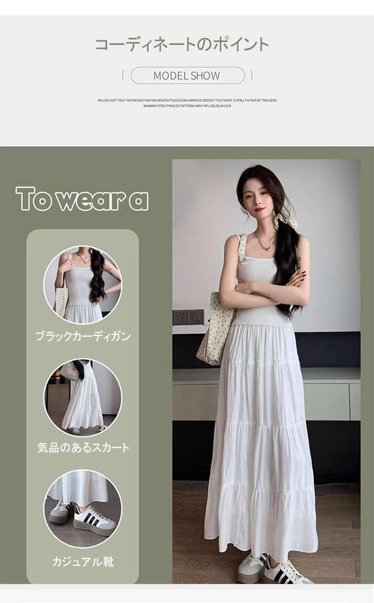 ロング丈のティアードスカートは、スタイルを美しく見せる効果があります。着痩せ効果があり、どんな体型にもフィットし、エレガントなシルエットを作り出します。