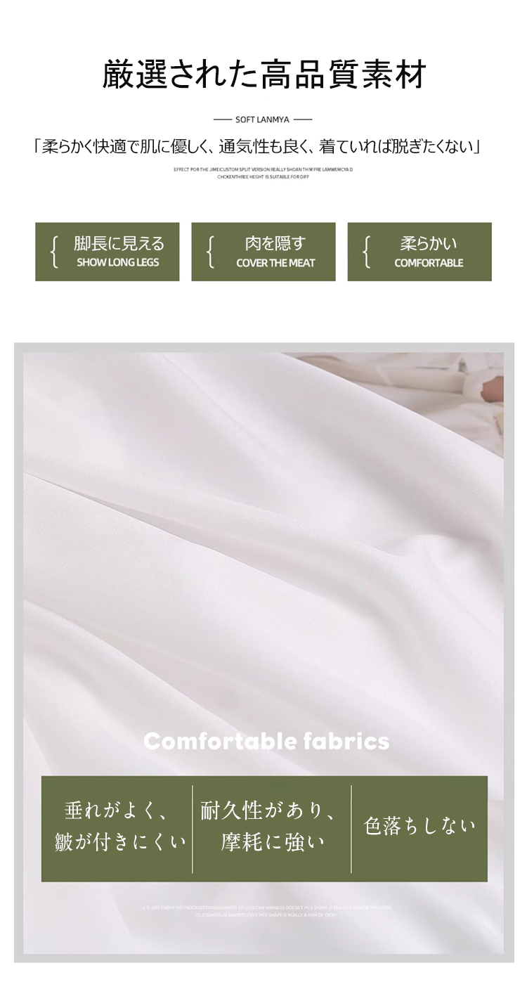 無地のロング丈(マキシ丈)デザインが、洗練された大人の魅力を引き出します。どんなトップスとも合わせやすく、シンプルでありながらスタイルに華やかさを加えることができます。