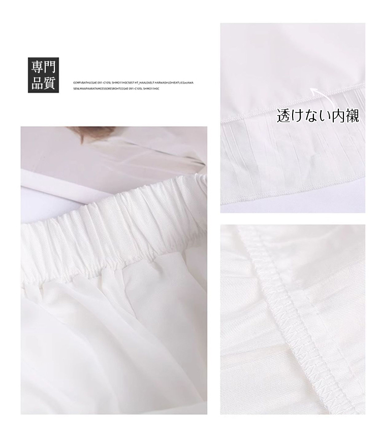 ウエスト部分にはゴムが入っており、着脱も簡単で、長時間の着用でも快適さを保ちます。しっかりフィットしつつも、体を締め付けずにリラックスできる着心地です。