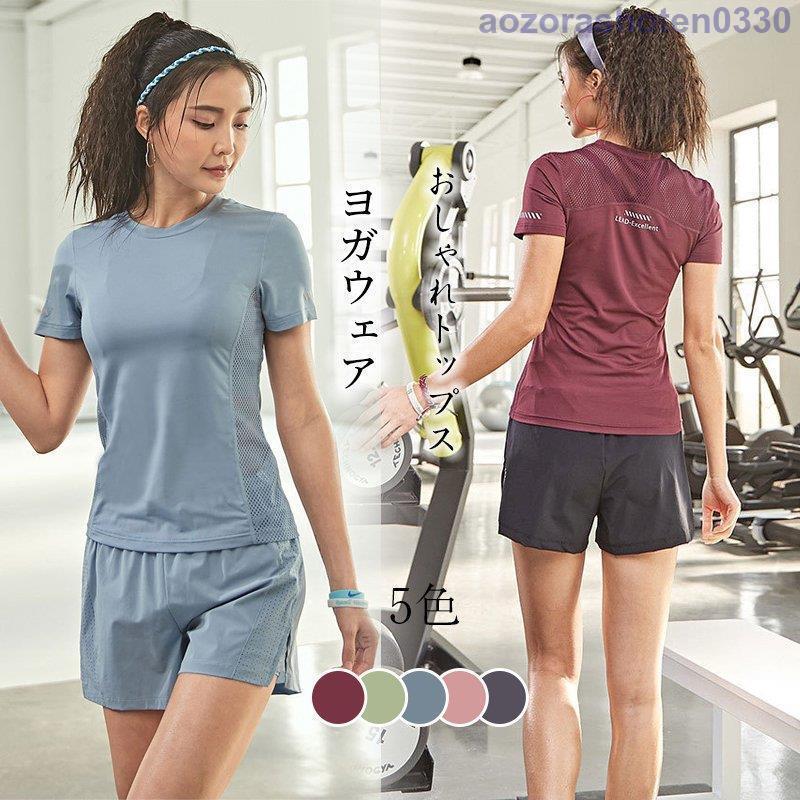 ヨガウェア トップス レディース Tシ トップス Tシャツ カットソー 人気 ブラック ピンク レッド ブルー S M L XL