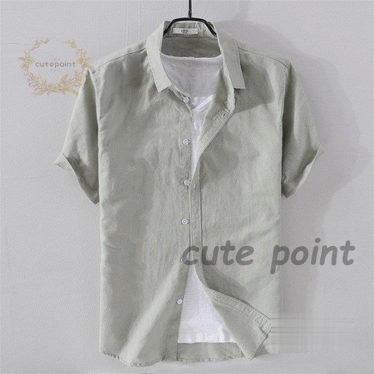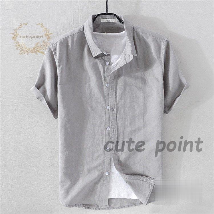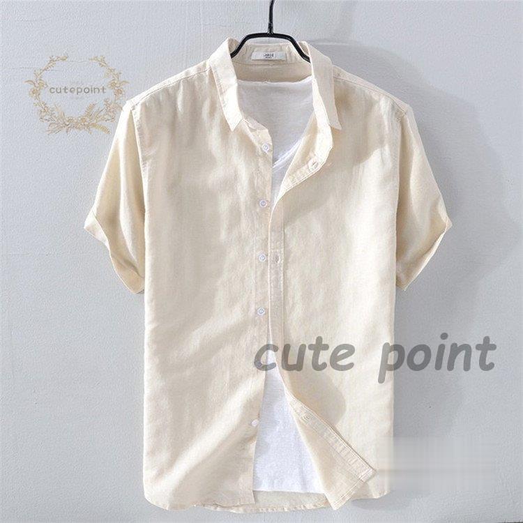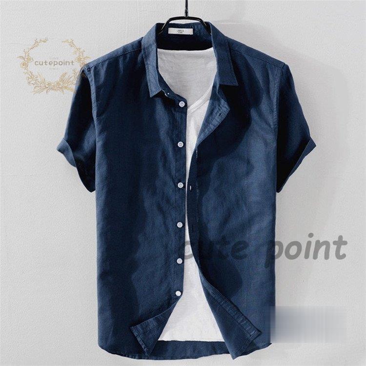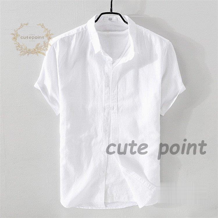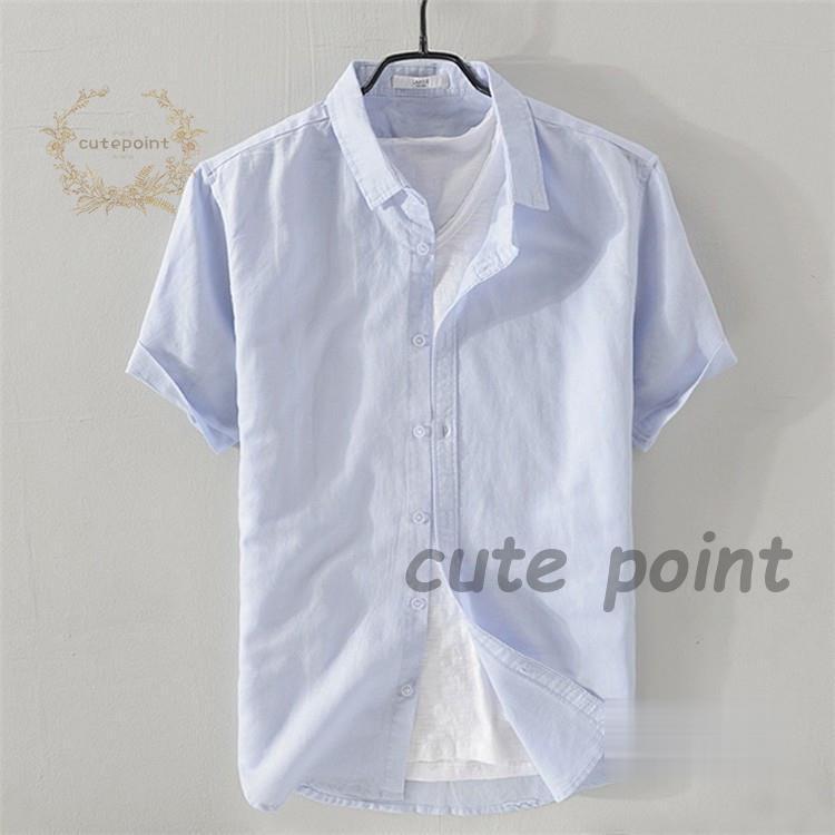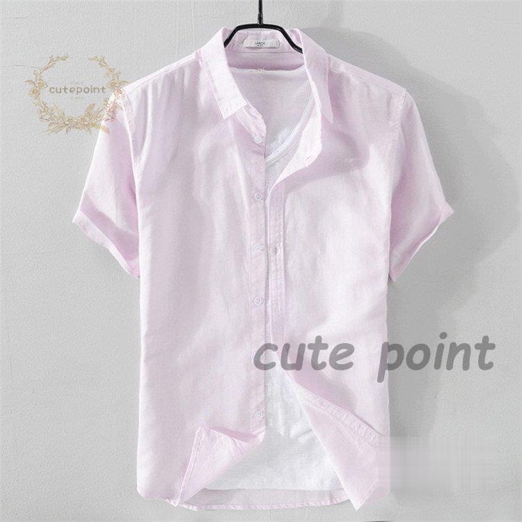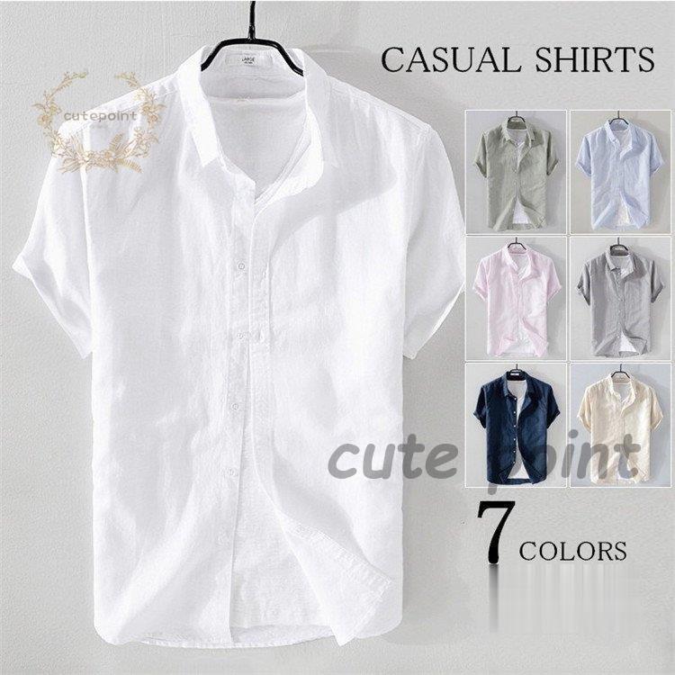 リネンシャツ メンズ 半袖 無地 麻混 トップス Tシャツ カットソー 特集 ホワイト ネイビー グレー 杏色 ライトブルー ピンク ライトグリーン M(S相当) L(M相当) XL(L相当) 2XL(XL相当) 3XL(2XL相当)
