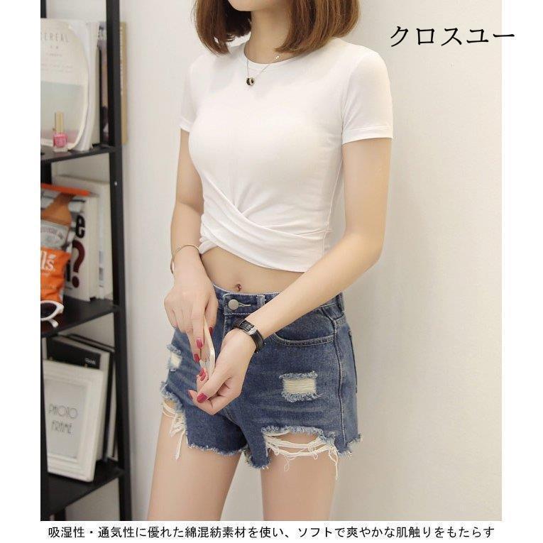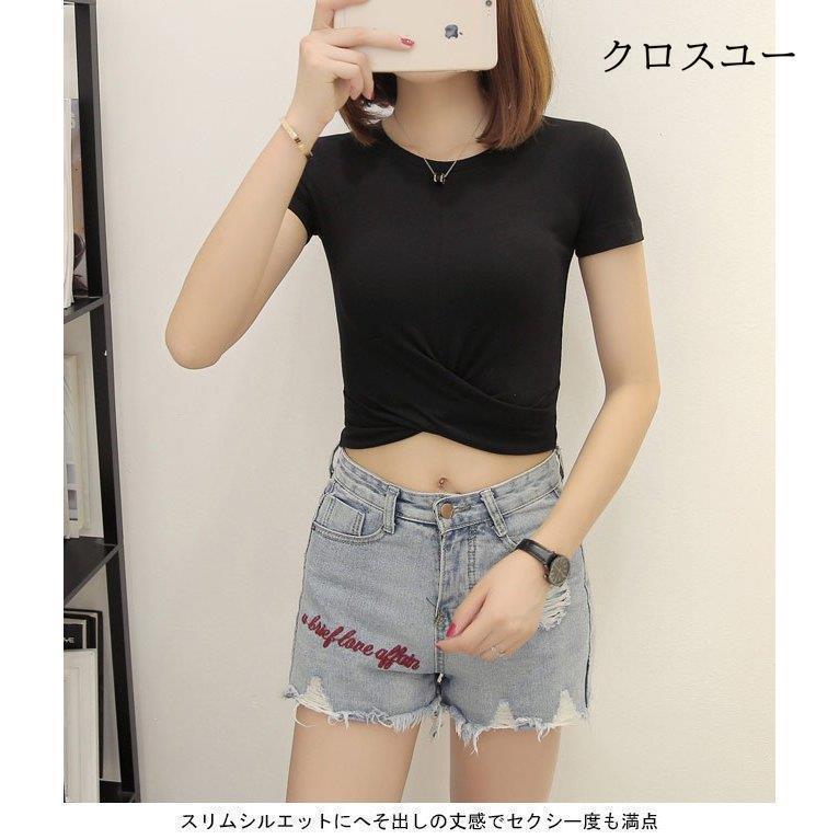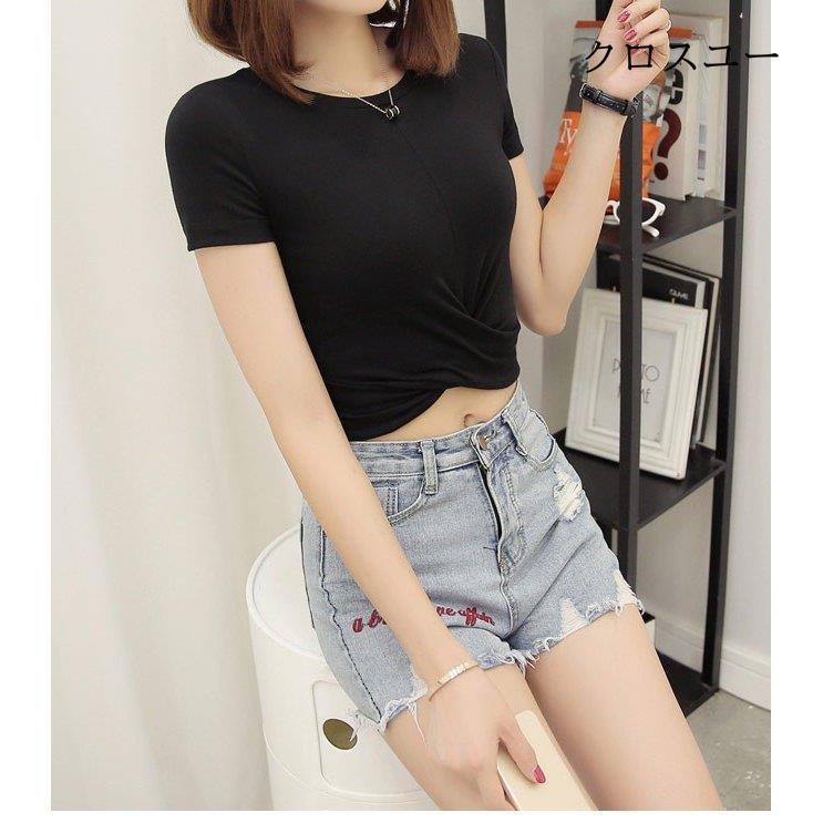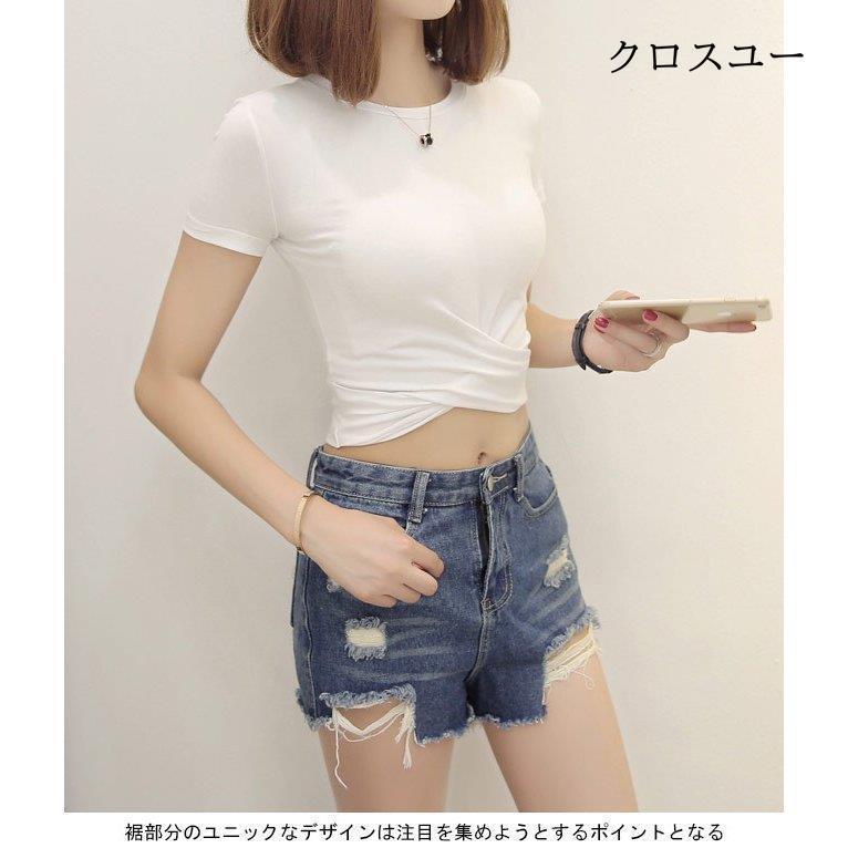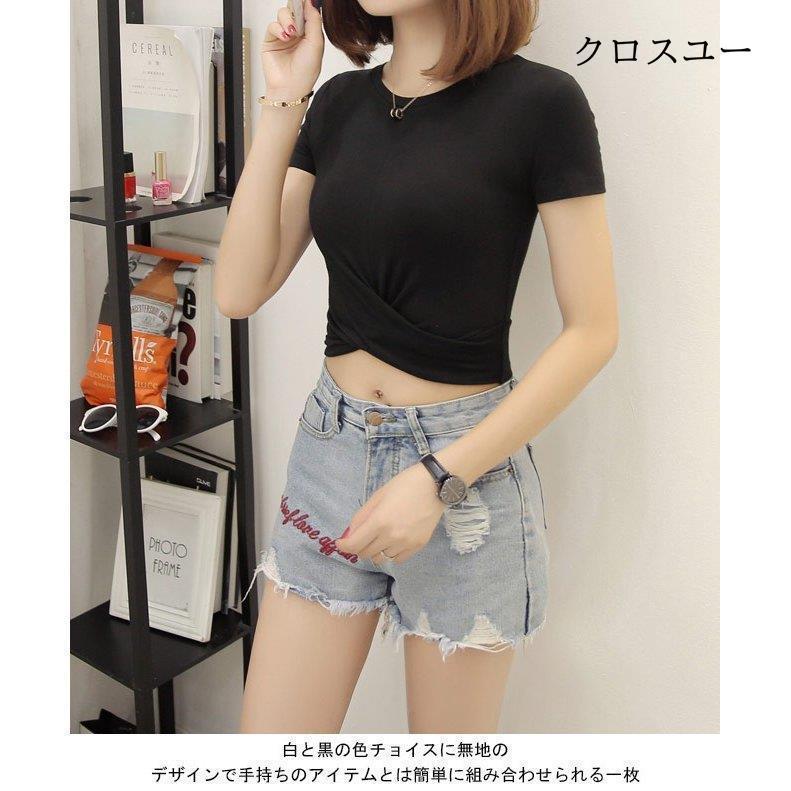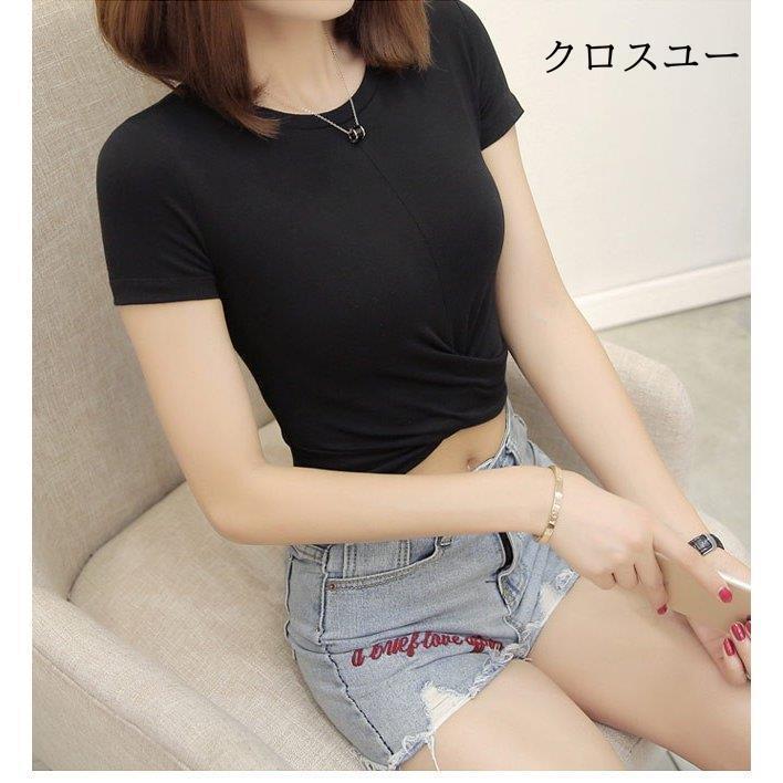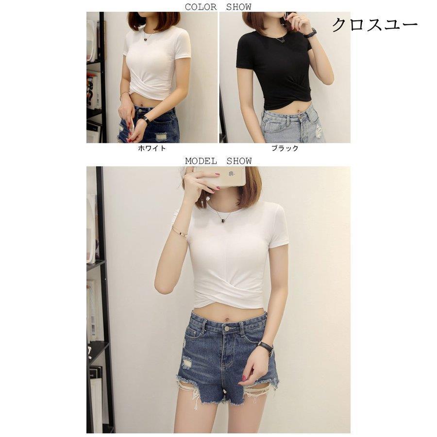 半袖Tシャツ レディース ヘソ出し 丸 トップス Tシャツ カットソー 人気 ホワイト ブラック S M L XL 2XL~