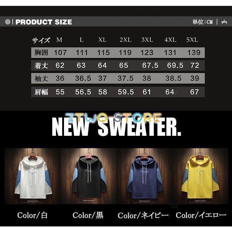 プルオーバーパーカー メンズ カジュア トップス Tシャツ カットソー 人気 黒 白 ネイビー イエロー M L XL 2XL 3XL 4XL 5XL