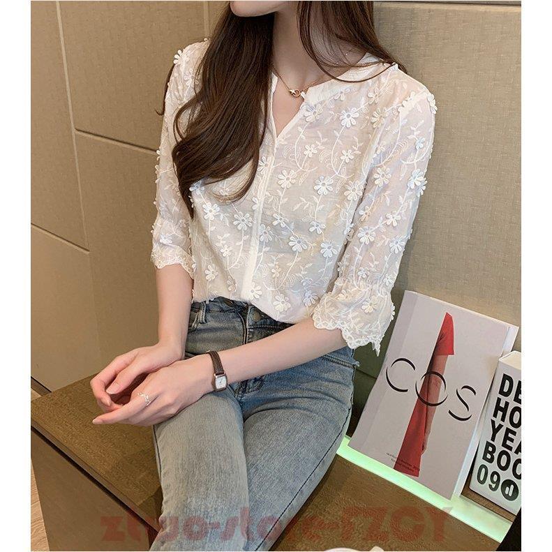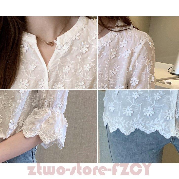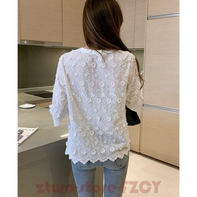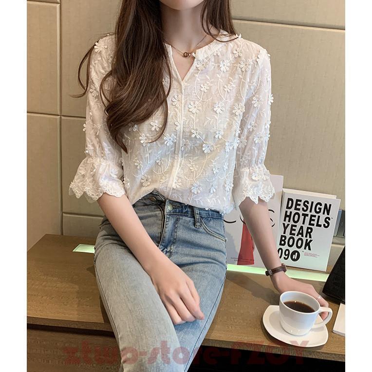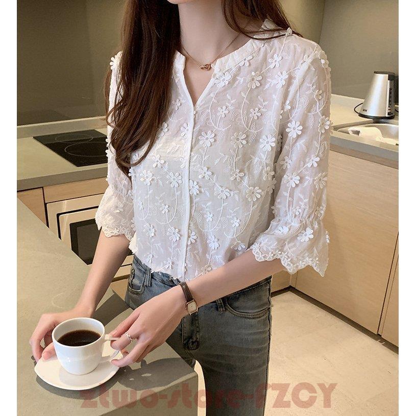 白シャツ 綿麻ブラウス 立体花 夏 5 レディースファッション 通販 M L XL XXL S