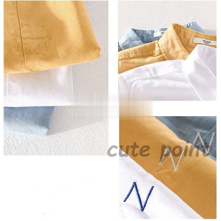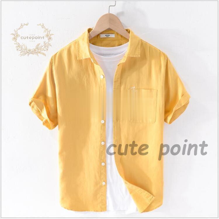 リネンシャツ メンズ 半袖 無地 麻混 トップス Tシャツ カットソー 通販 ホワイト イエロー ブルー M(S相当) L(M相当) XL(L相当) 2XL(XL相当) 3XL(2XL相当)