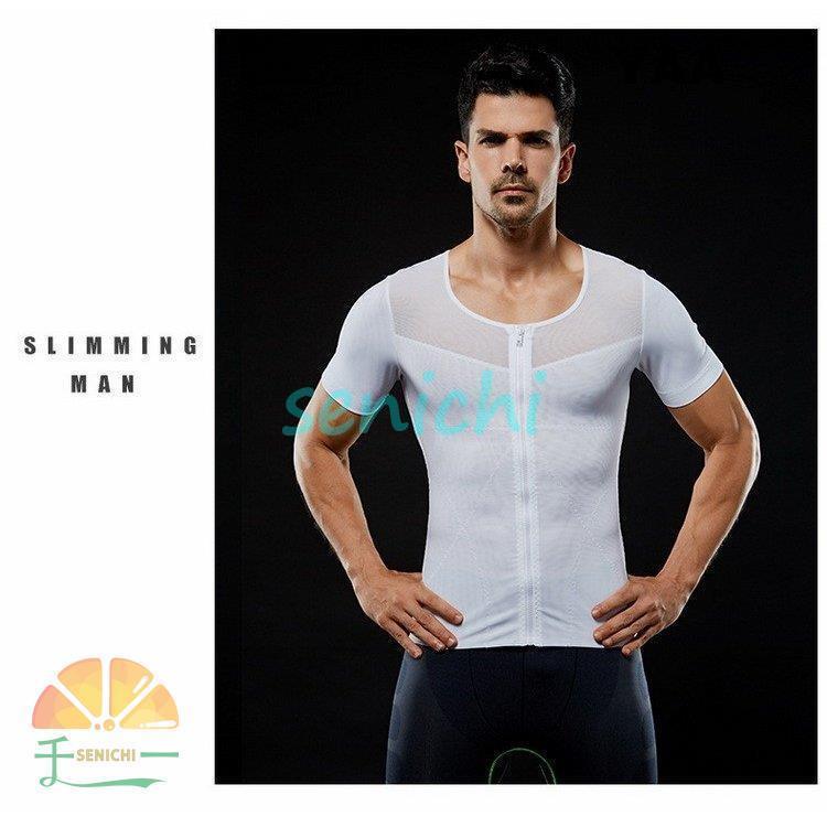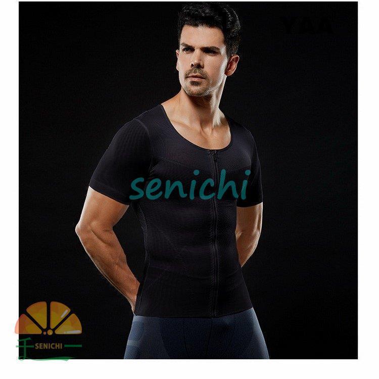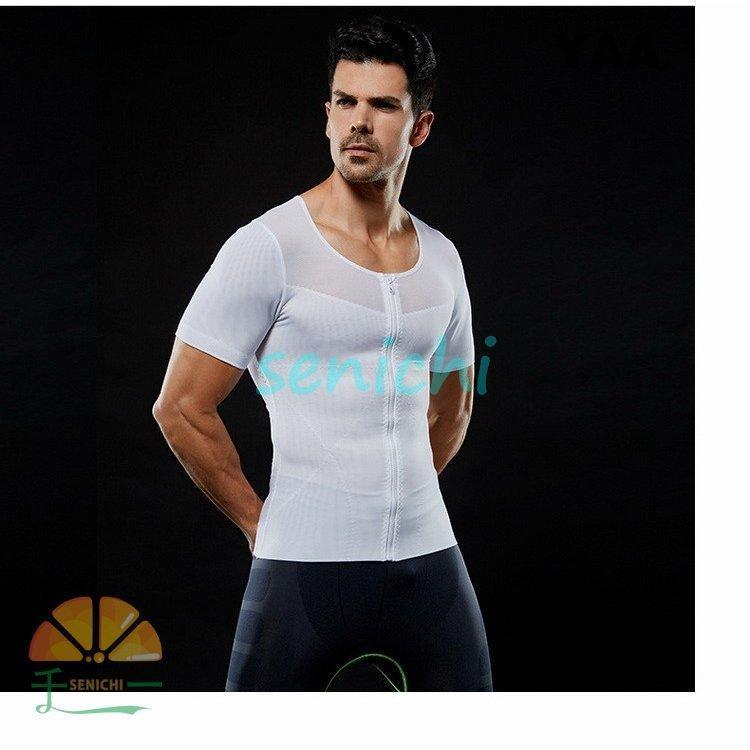 着圧シャツ メンズ 加圧シャツ 機能性 補正下着 ジップアップ 半袖 インナー フィットネス スポーツウェア 吸汗速乾 コンプレッション