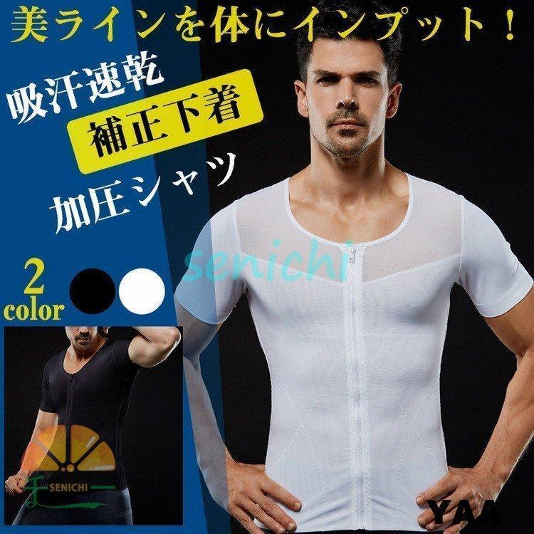 着圧シャツ メンズ 加圧シャツ 機能性 補正下着 ジップアップ 半袖 インナー コンプレッション フィットネス スポーツウェア 吸汗速乾
