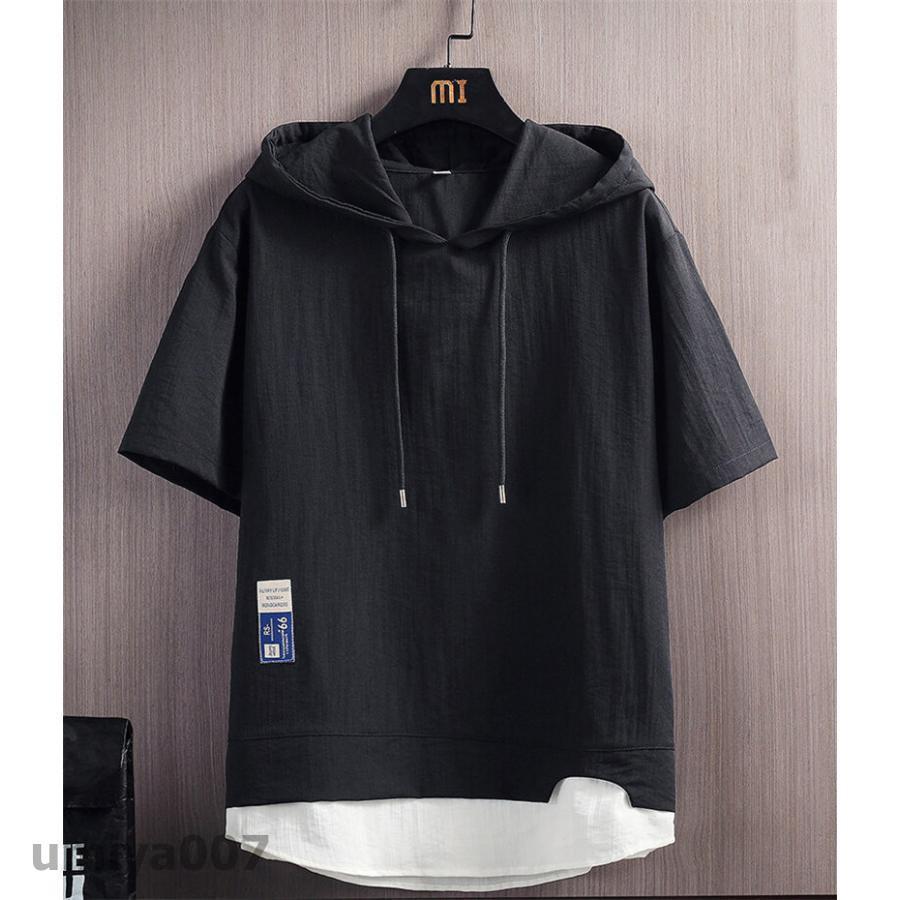 半袖パーカー メンズ 半袖 切り替え トップス Tシャツ カットソー 特集 A01 A02 A03 A04 M L XL 2XL 3XL