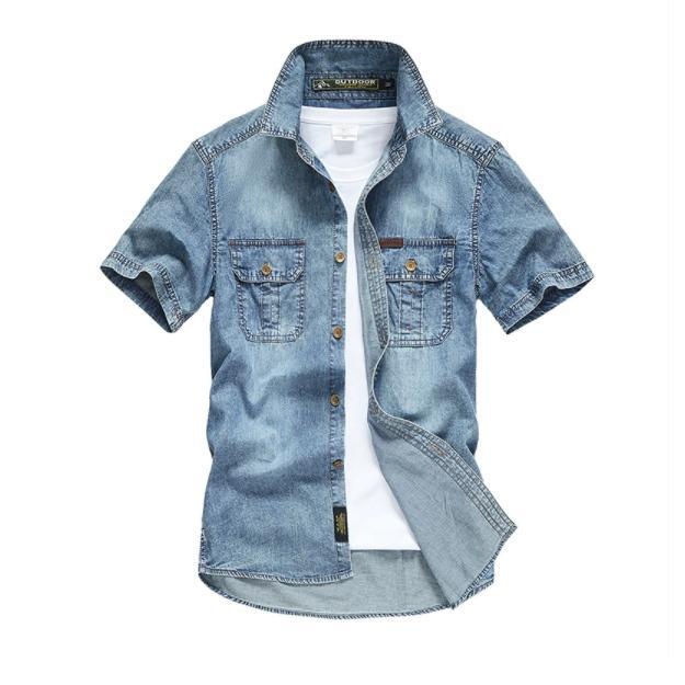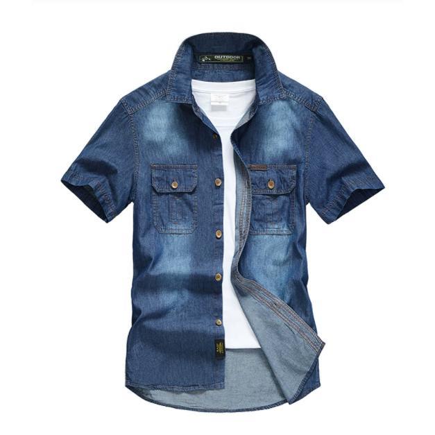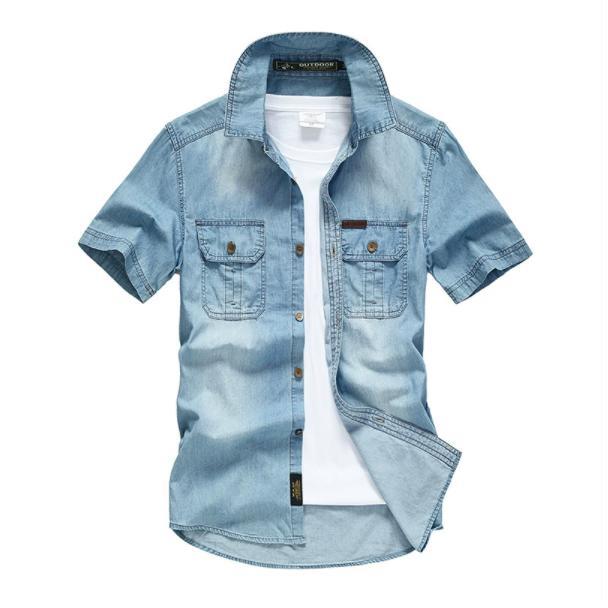 デニムシャツ 半袖 メンズ トップス トップス Tシャツ カットソー 人気 ライトブルー ダークブルー ブルー M L XL 2XL 3XL 4XL 5XL