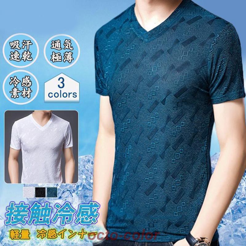 冷感インナー メンズ TシャツVネック メンズファッション 人気 ホワイト ブラック ブルー M L XL 2XL 3XL 4XL