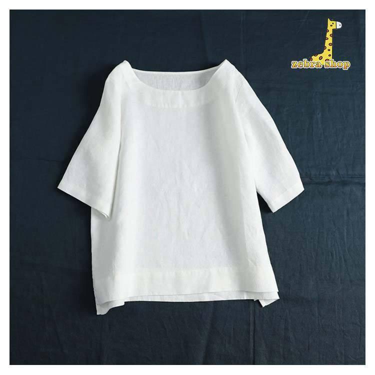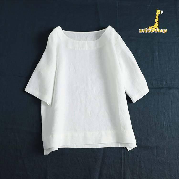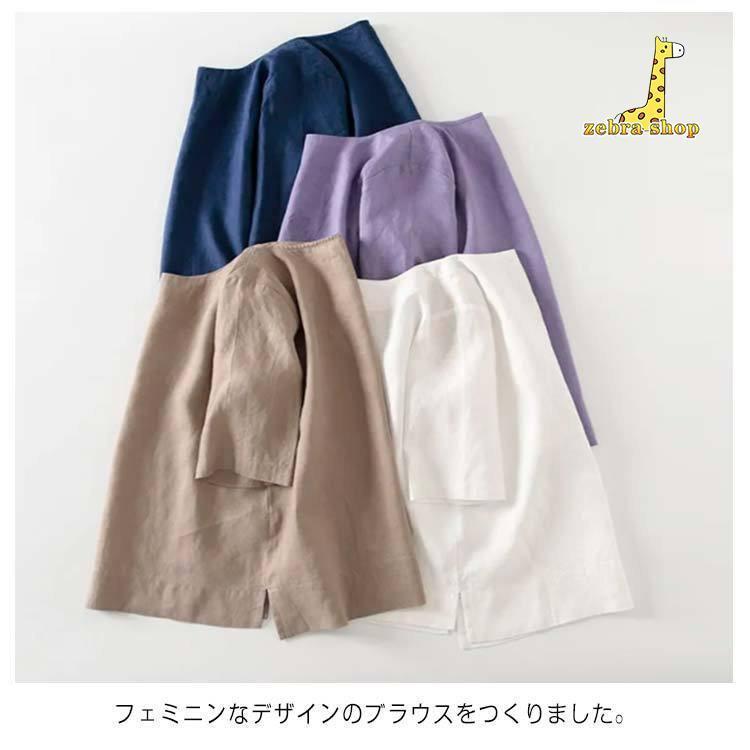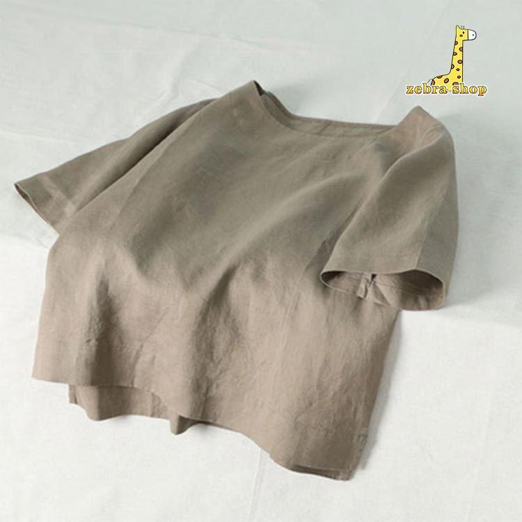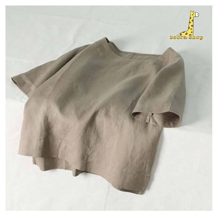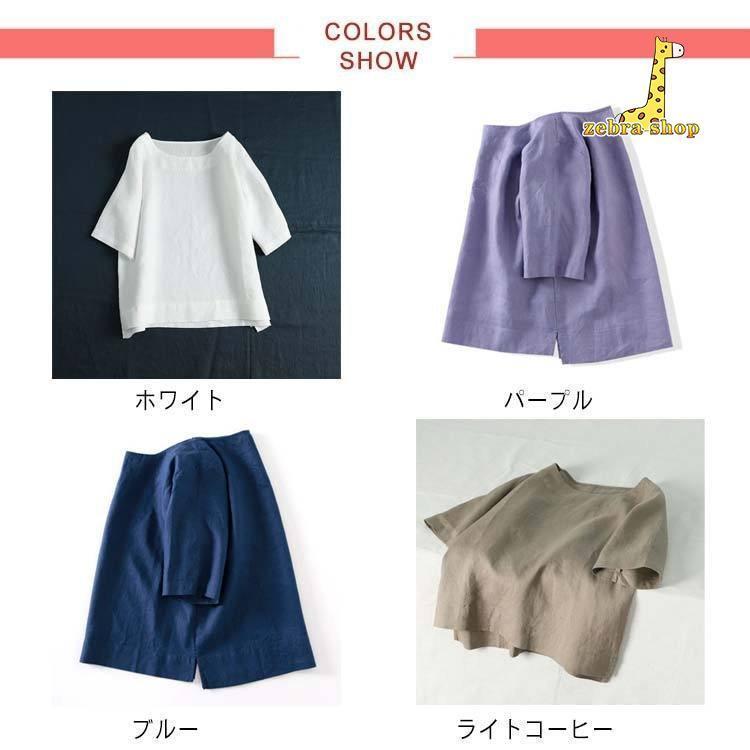 リネン シャツ ブラウス 半袖 レディ トップス Tシャツ カットソー 通販 ホワイト パープル ブルー ライトコーヒー M L XL 2XL
