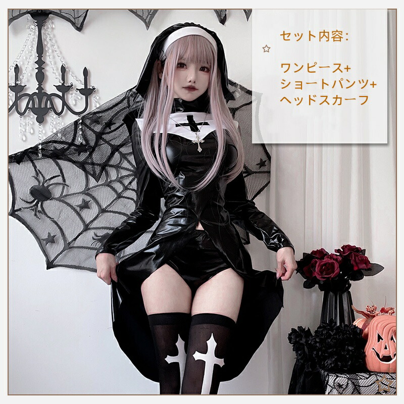 吸血鬼コスチューム 大人ハロウィンダークゴシック 修道女のユニフォーム ハロウィン衣装 レディースコスチューム ミニドレス ショート丈 ゴシック セクシー ドラキュラコスプレ