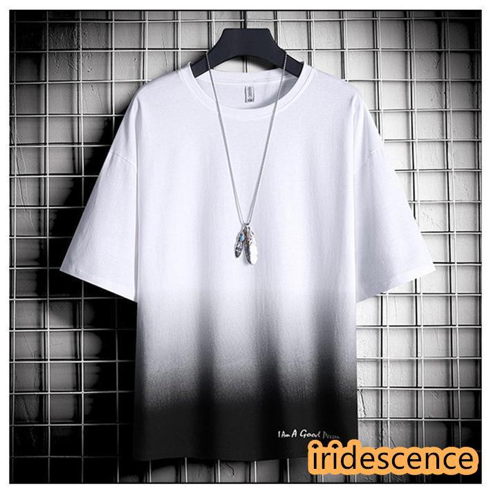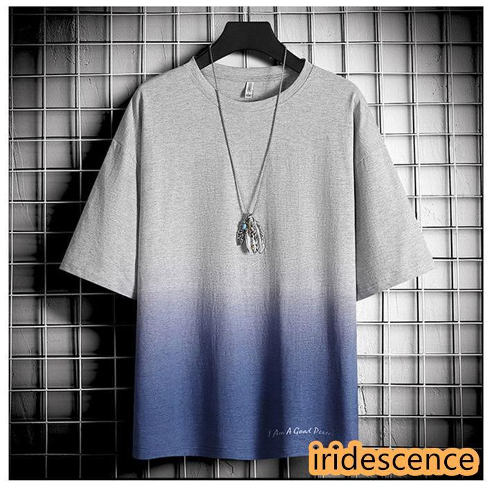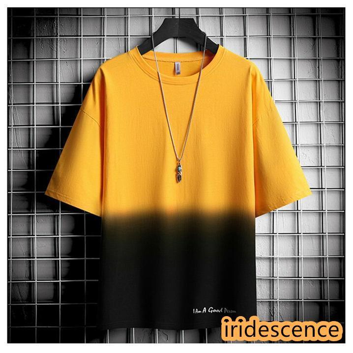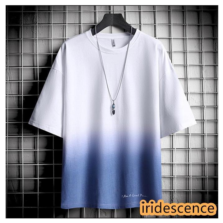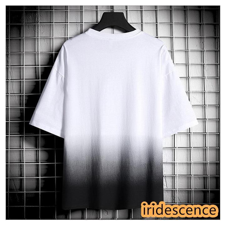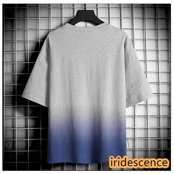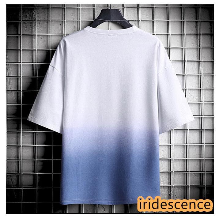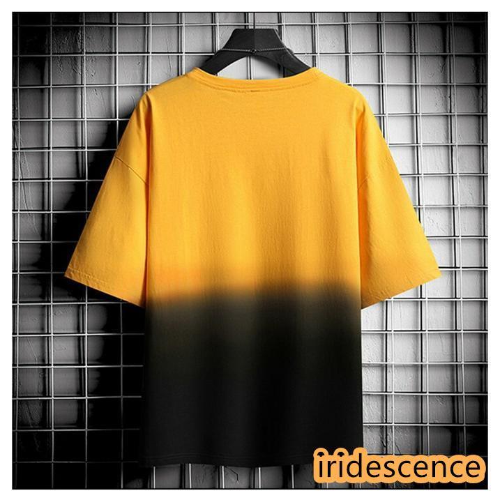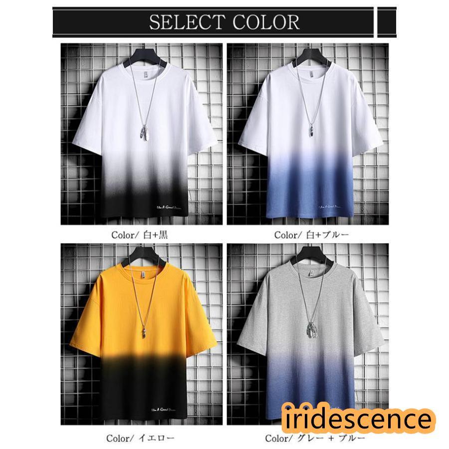 グラデーション Tシャツ メンズ 半袖 メンズファッション 特集 白+黒 白+ブルー グレー+ブルー イエロー L XL 2XL 3XL