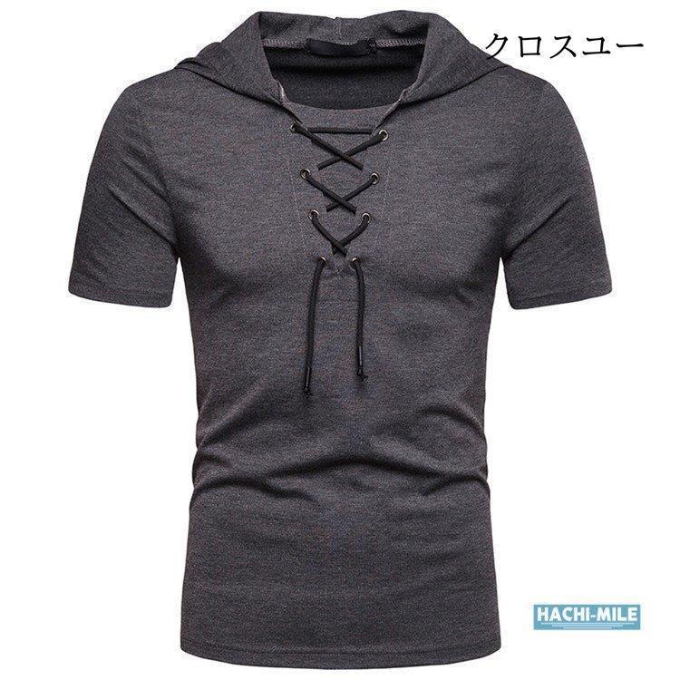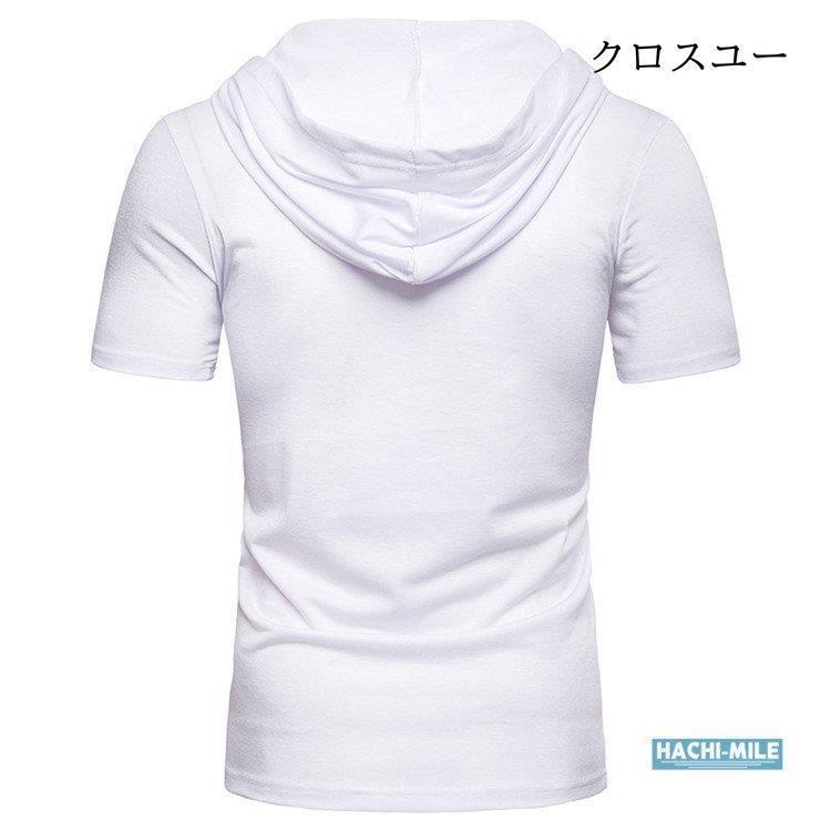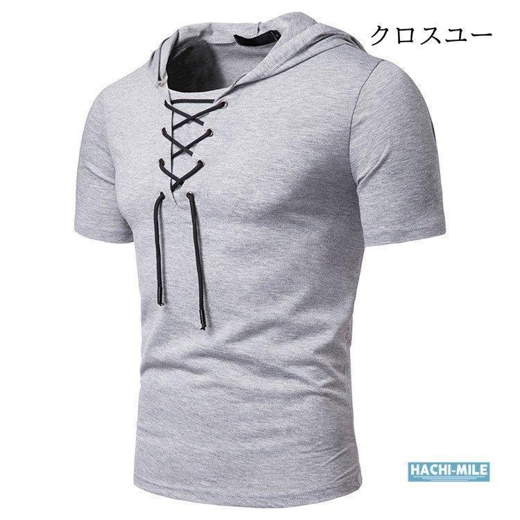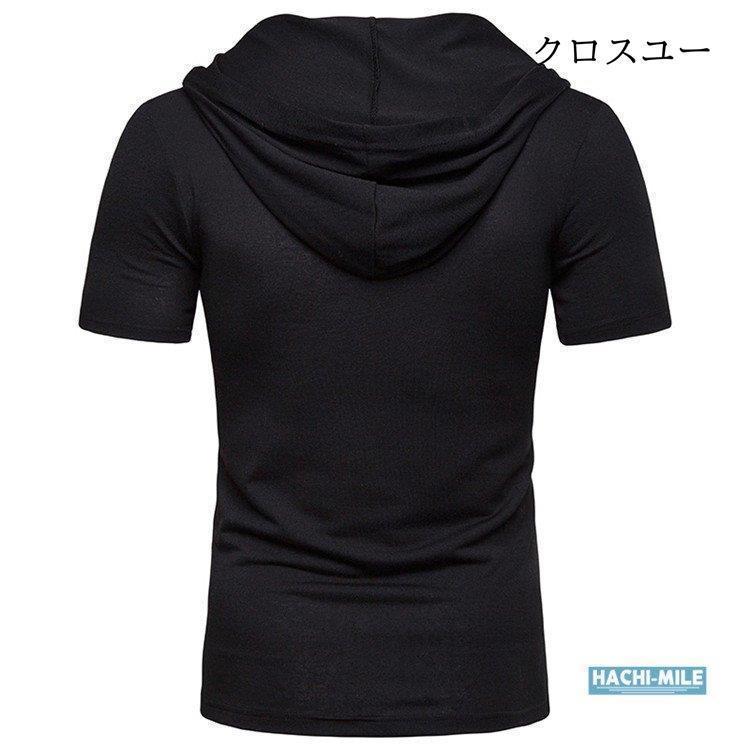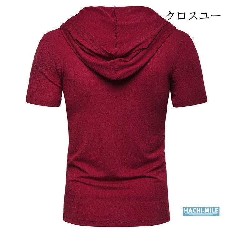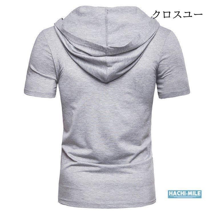 パーカー メンズ 半袖パーカー スウェ トップス Tシャツ カットソー 人気 レッド ネイビー 黒 白 ライトグレー ダークグレー S M L XL 2XL~