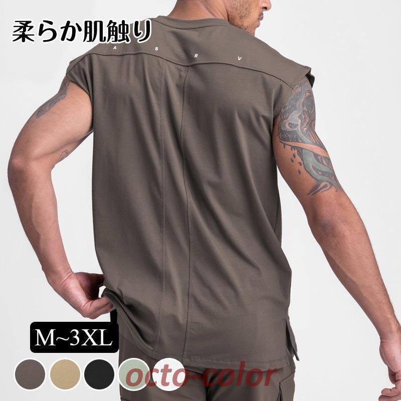 ノースリーブ タンクトップ メンズ 無 トップス Tシャツ カットソー 人気 ホワイト カーキ グレー ブラック グリーン M L XL 2XL 3XL