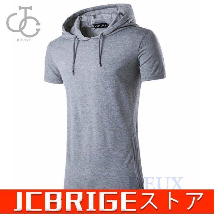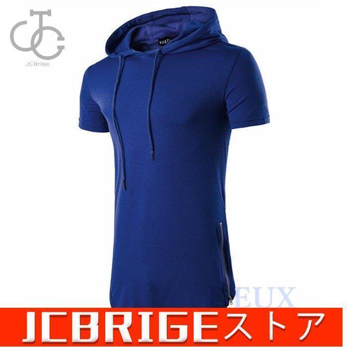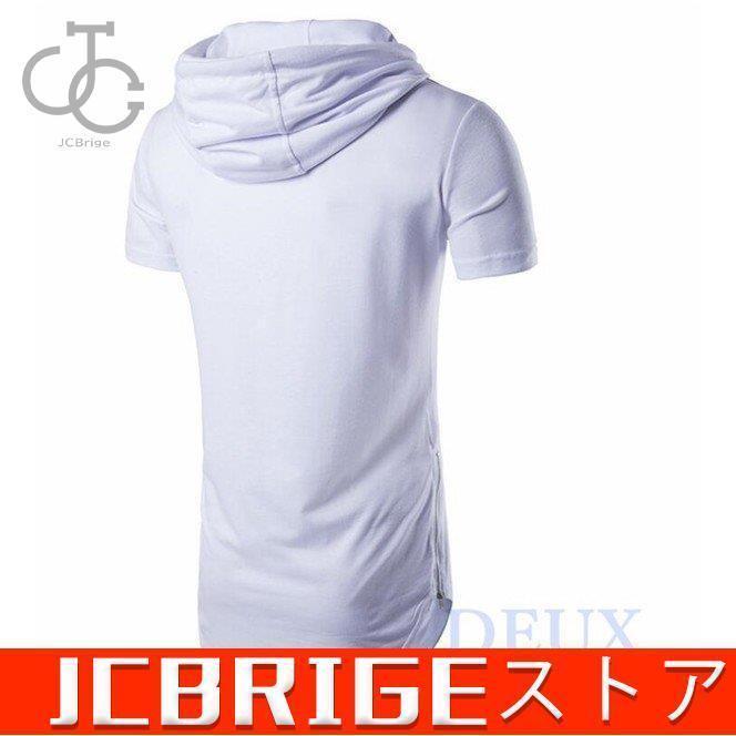 Tシャツ メンズ 半袖 ロング丈 ファ メンズファッション 特集 S M L XL 2XL ブラック ホワイト ブルー グレー