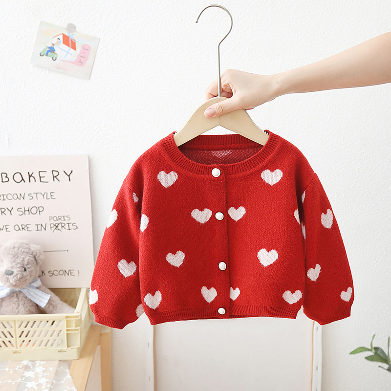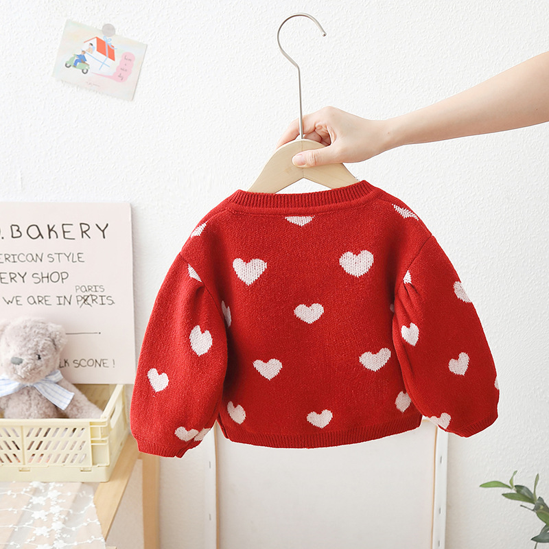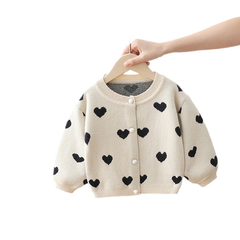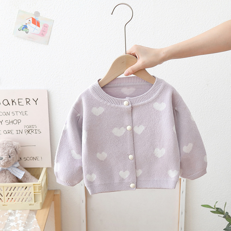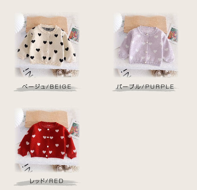 スウェット ニットシャツ カーディガン 女の子 前開き ボタン 子供服 キッズ服 女の子 かわいい ハート 総柄 長袖 プレゼント ギフト 春 秋 80 90 100 110 120 cm 配送無料