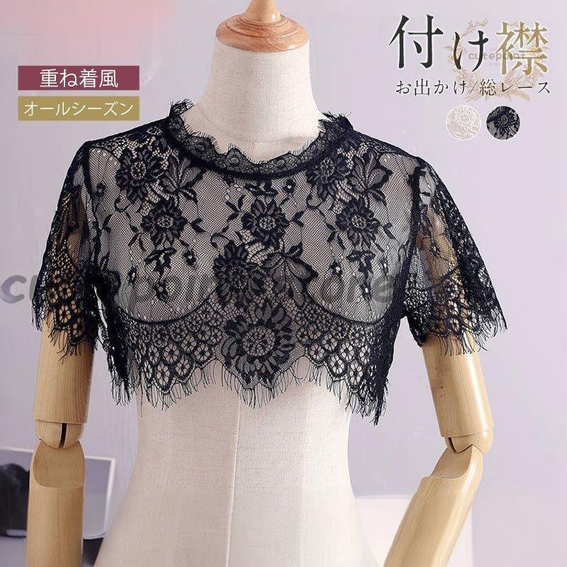 総レース 付け襟 レディース 重ね着風 レディースファッション 人気 ホワイト ブラック