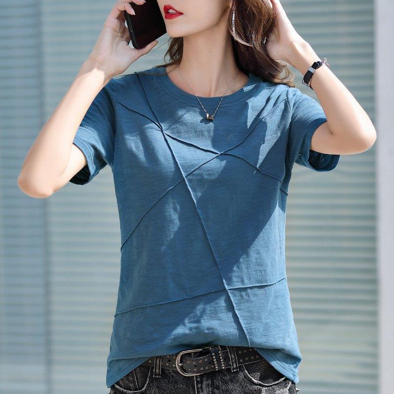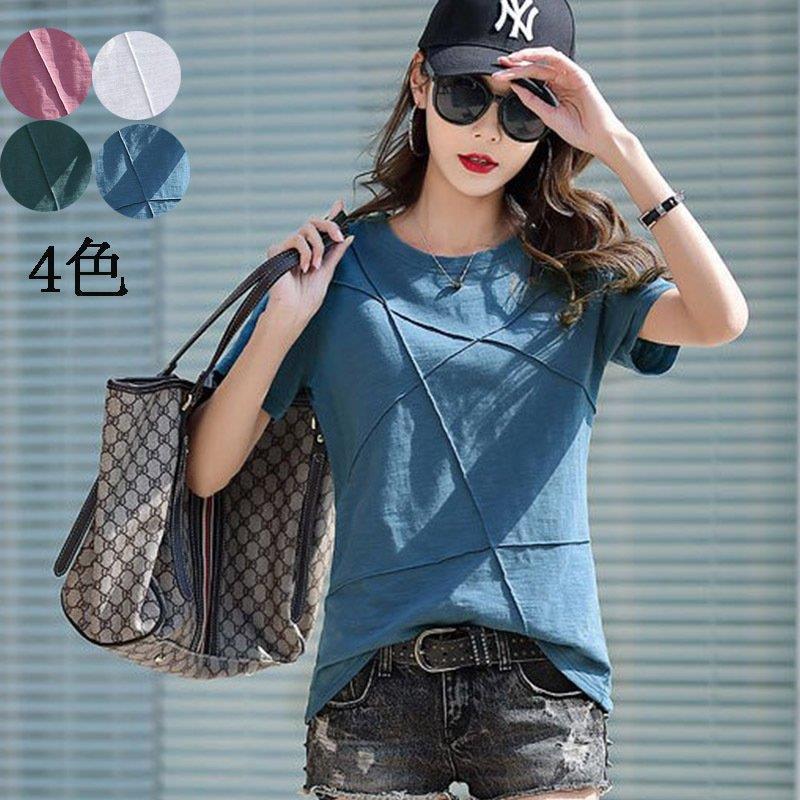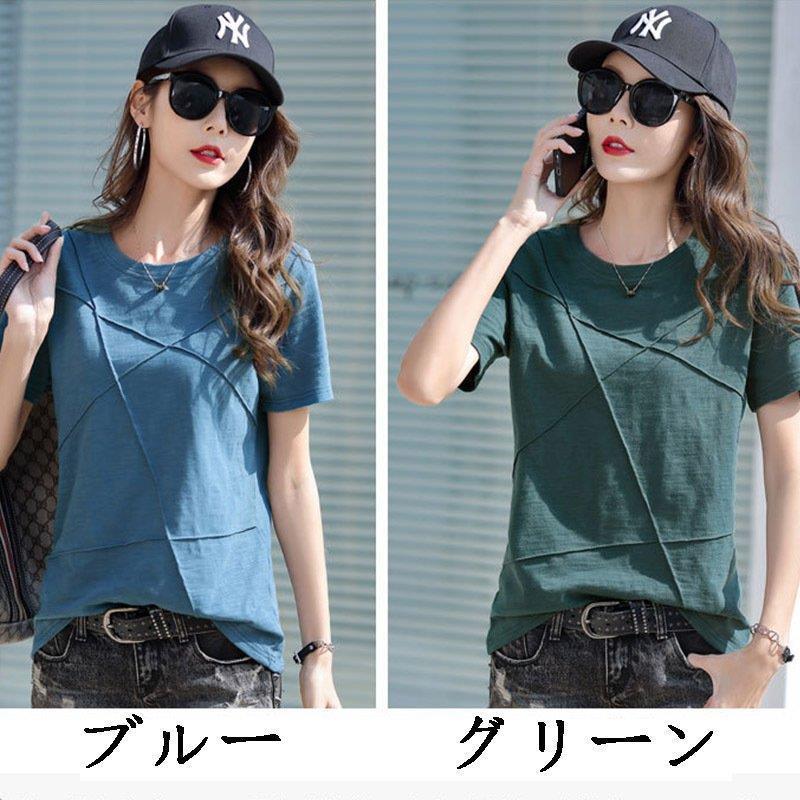 無地 コットン綿 綿クルーネック レデ レディースファッション 人気 グリーン パープル ブルー ホワイト M L XL 2XL 3XL 4XL~