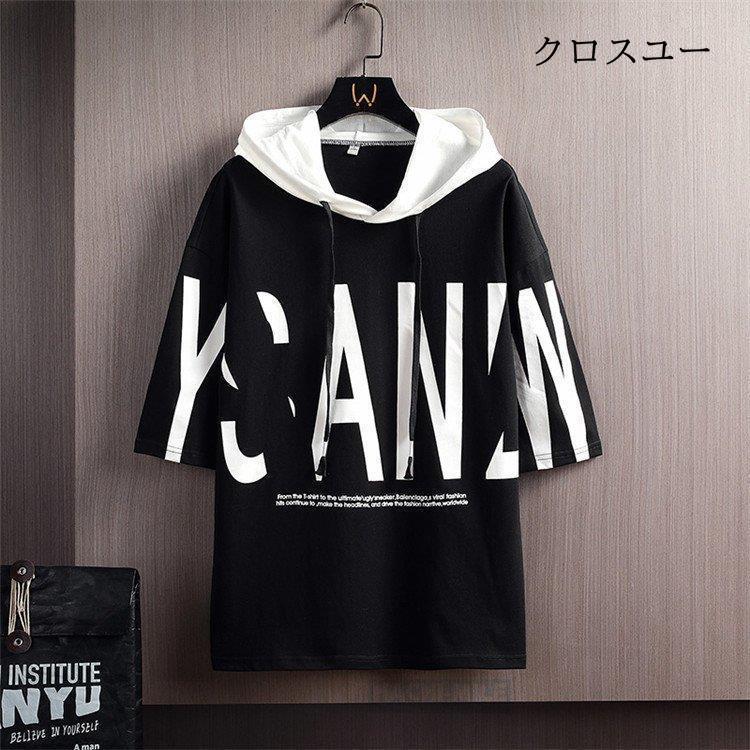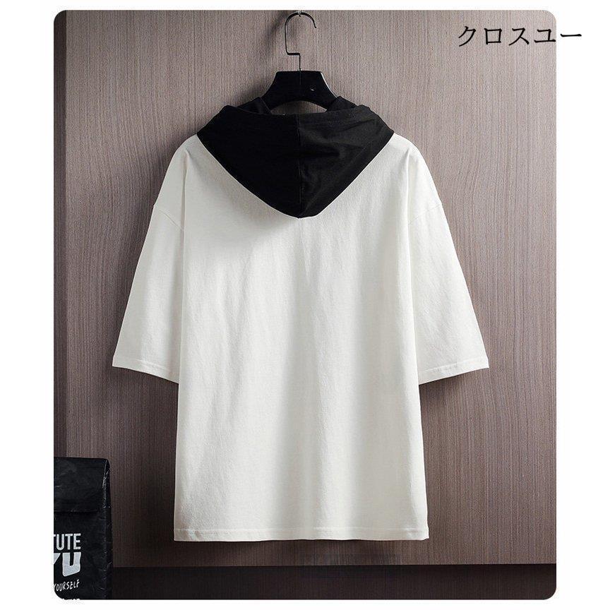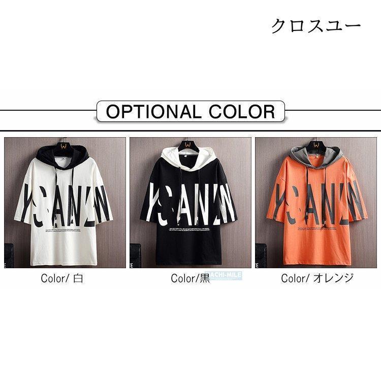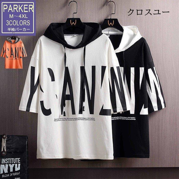 半袖パーカー メンズ パーカー 五分袖 メンズファッション 通販 白 黒 オレンジ M L XL 2XL 3XL 4XL~