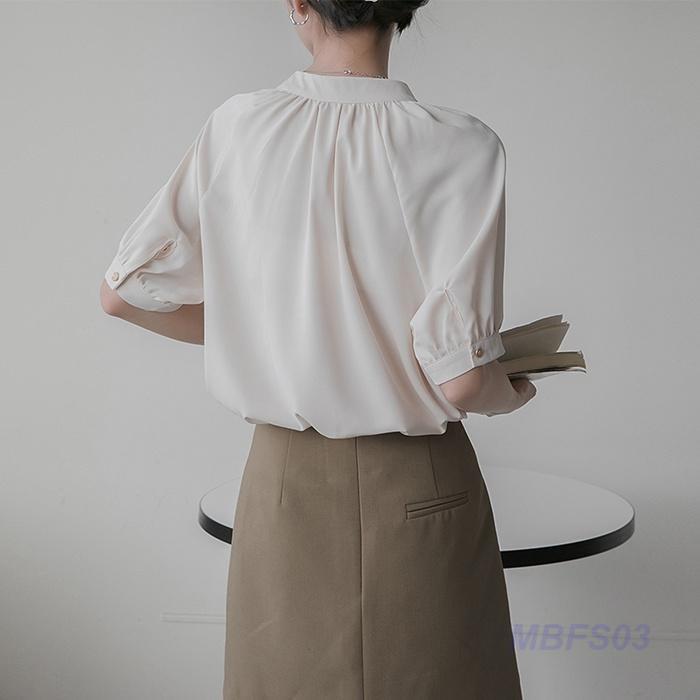 シアースリーブ ドッキングシャツ ボウタイシャツブラウス