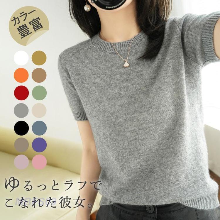 サマーニット レディース 半袖 tシャ レディースファッション 人気 A01 A02 A03 A04 A05 A06 A07 A08 A09 A10 A11 A12 A13 A14 A15 S M L XL 2XL