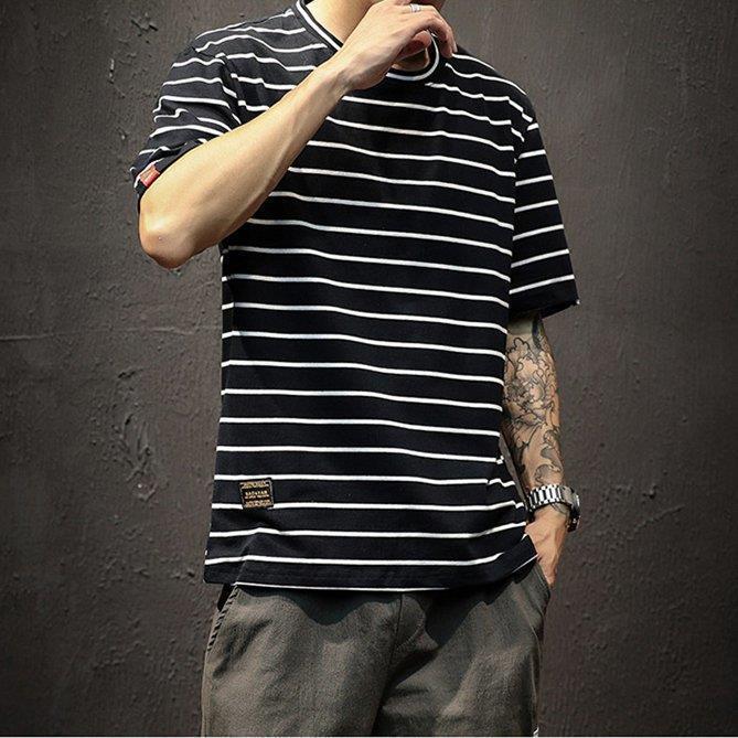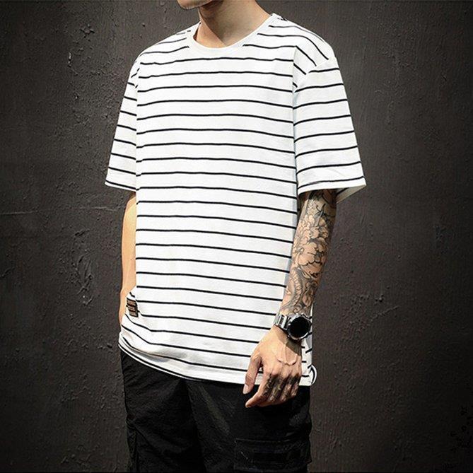 Tシャツ ストライプ メンズ 半袖Tシ トップス Tシャツ カットソー 人気 ブラック ライトグレー ホワイト M L XL 2XL 3XL 4XL 5XL