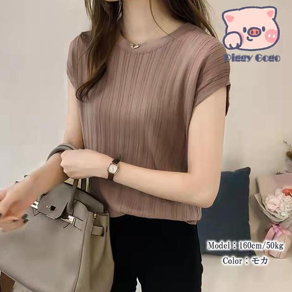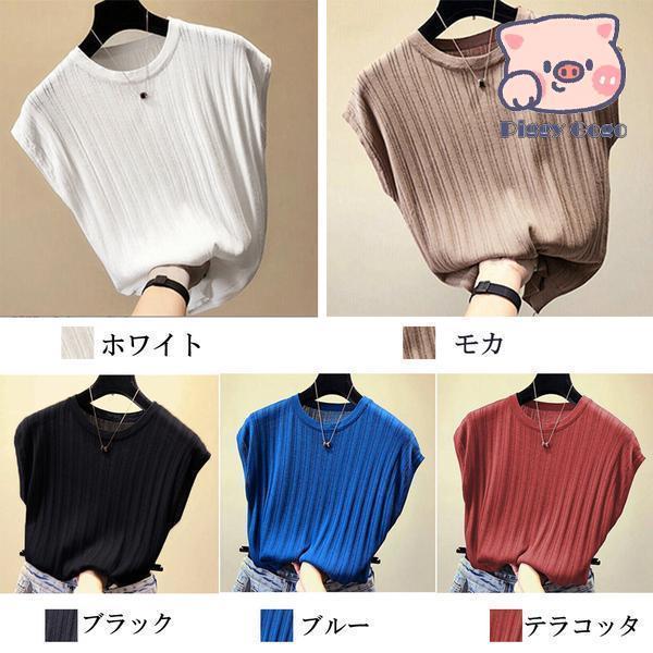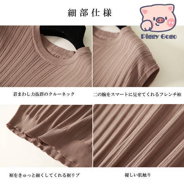 サマーニット フレンチ袖 レディース無 トップス Tシャツ カットソー 人気 ブラック ブルー テラコッタ ホワイト モカ