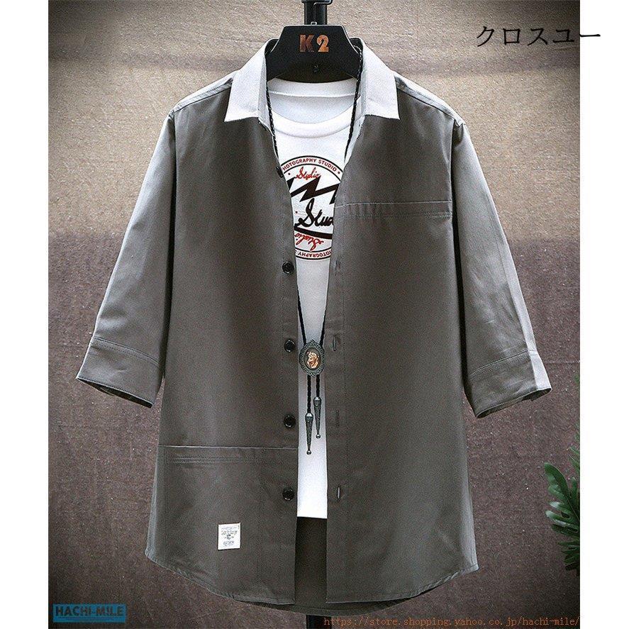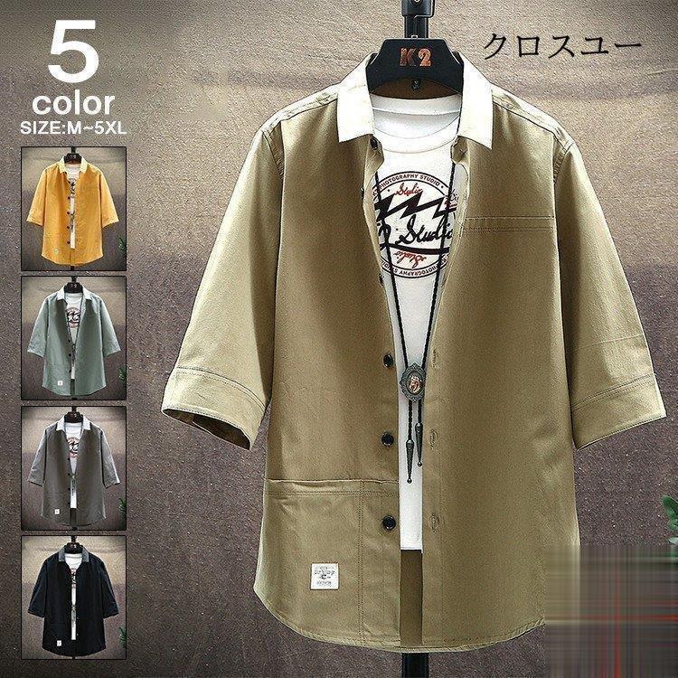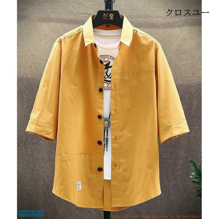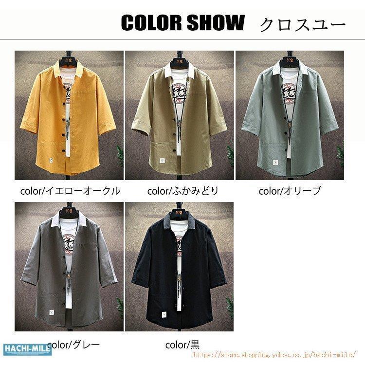 七分袖シャツ メンズ ワイシャツ おし トップス Tシャツ カットソー 通販 イエローオークル ふかみどり オリーブ 黒 M L XL 2XL 3XL 4XL 5XL~