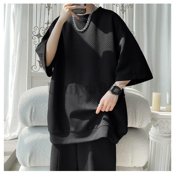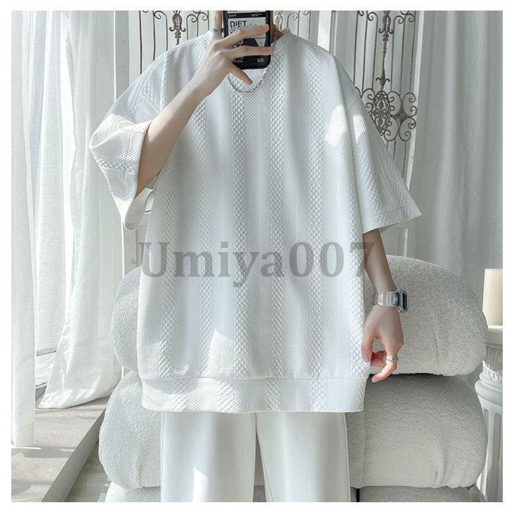 tシャツ メンズ 半袖 5分袖 ワッフ メンズファッション 通販 ホワイト ブラック グレー L XL XXL XXXL