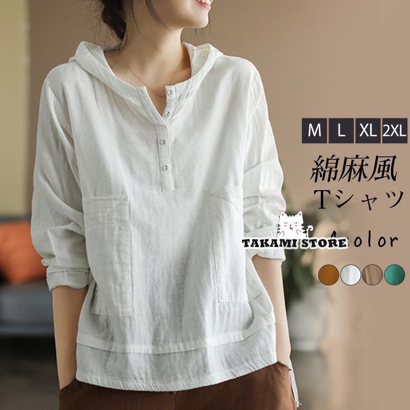 Tシャツ レディース 長袖 パーカー レディースファッション 人気 グリーン コーヒー オレンジ ホワイト M L XL 2XL