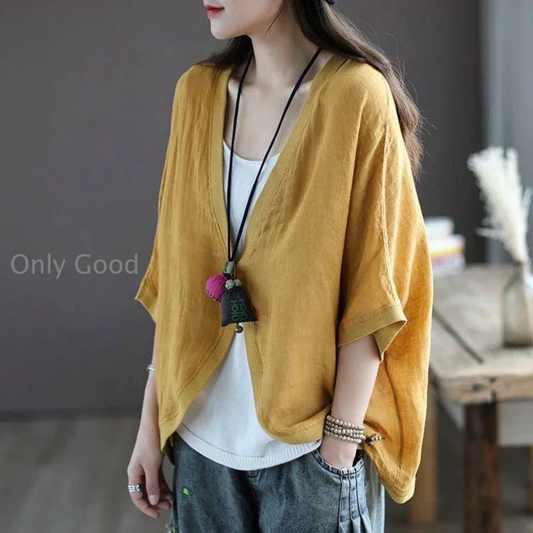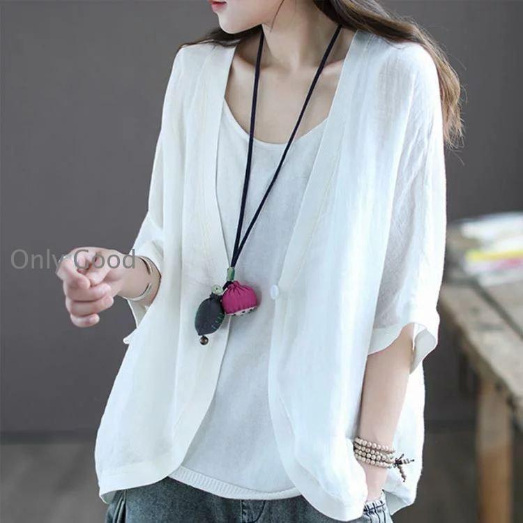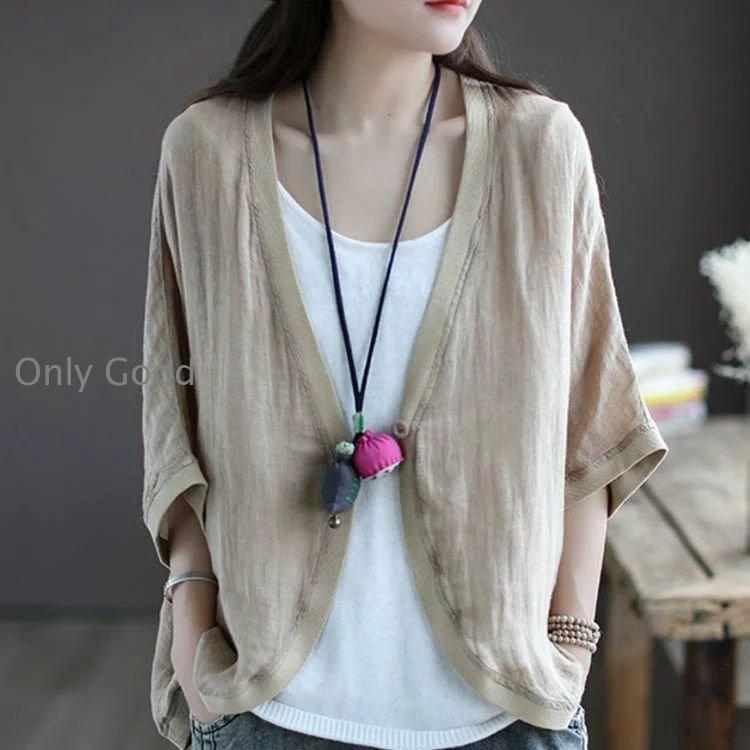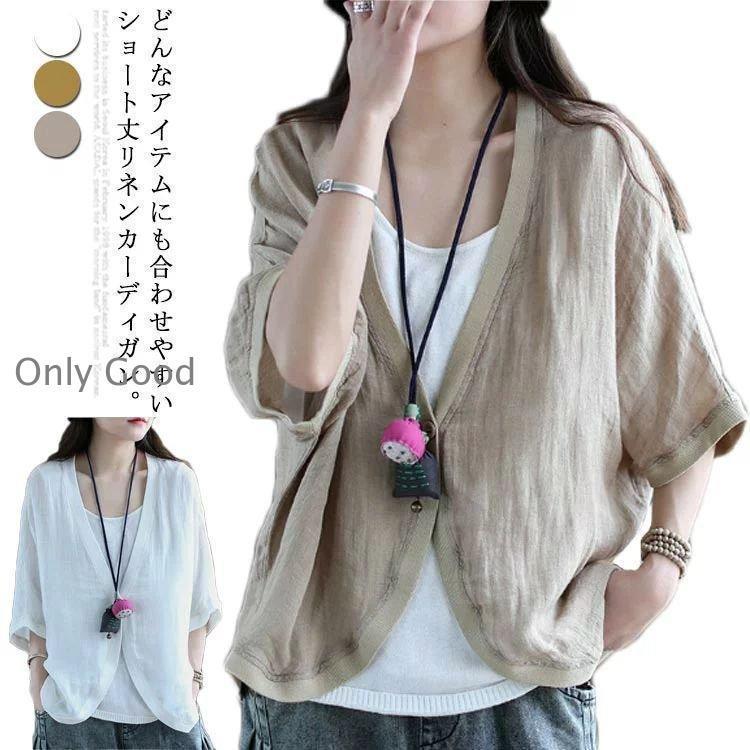 綿麻 ボレロ ショート カーディガン トップス Tシャツ カットソー 人気 ホワイト イー カーキ M L XL