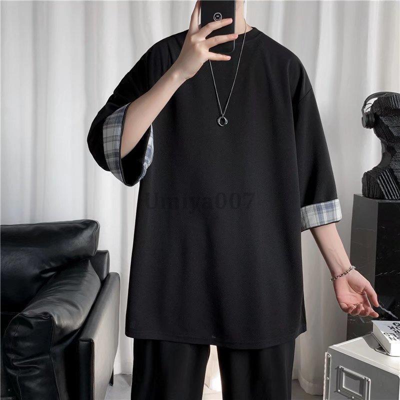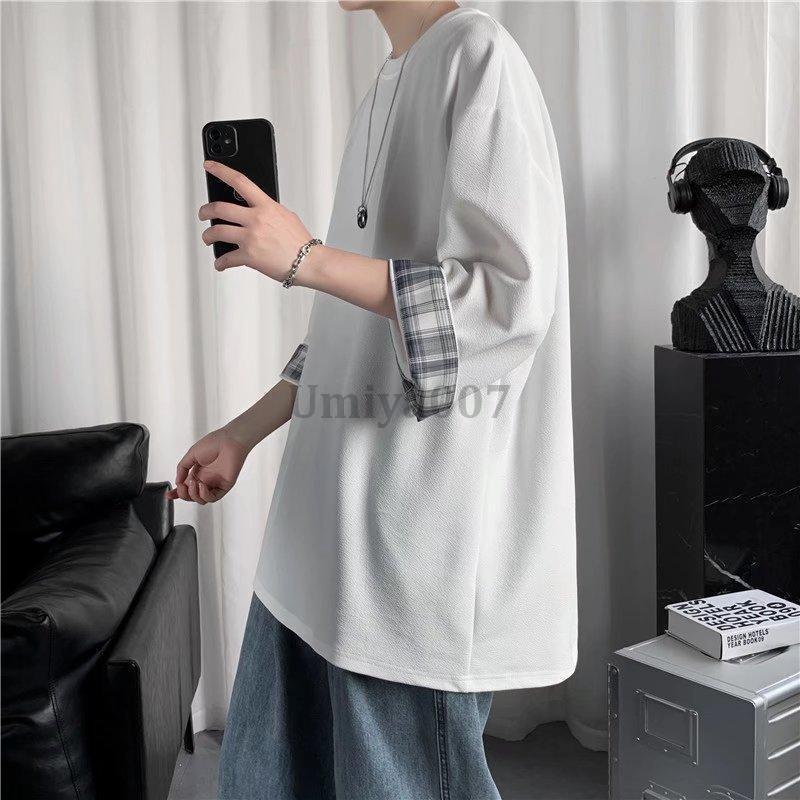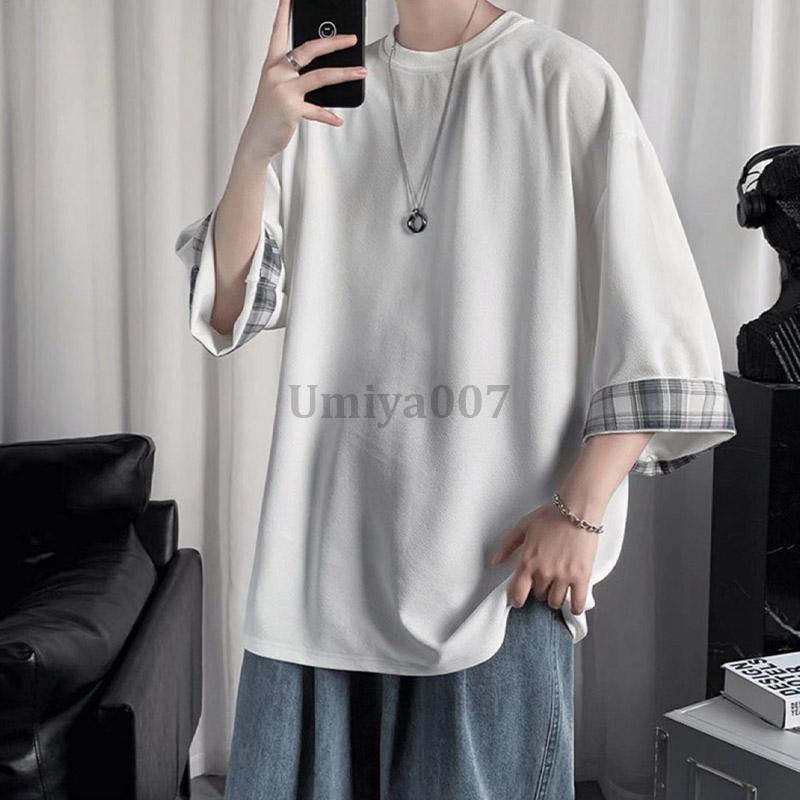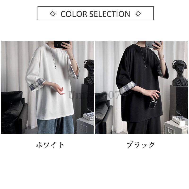 Tシャツ 7分袖 メンズ 七分丈tシャ トップス Tシャツ カットソー 人気 ホワイト ブラック M L XL 2XL 3XL 4XL 5XL