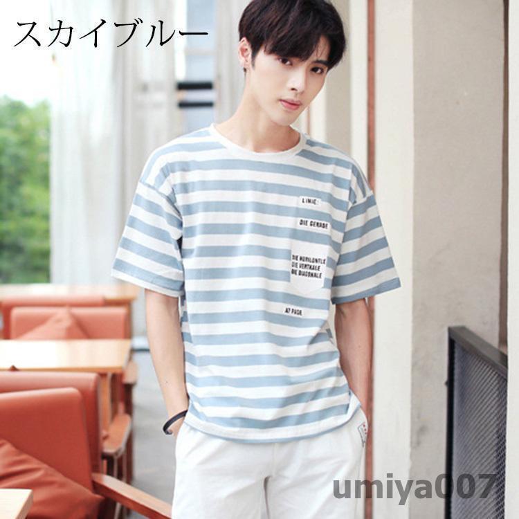 Tシャツ メンズ 半袖 丸い襟 プリン トップス Tシャツ カットソー 特集 ネイビー スカイブルー S M L XL 2XL 3XL