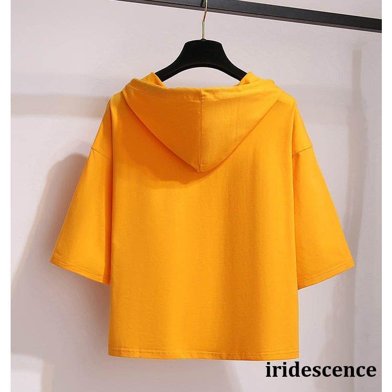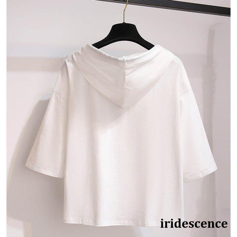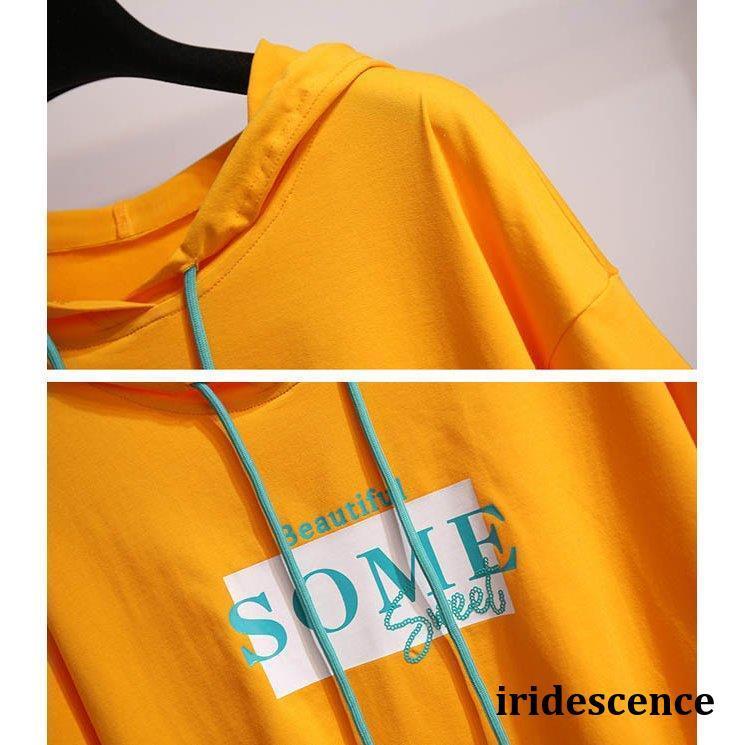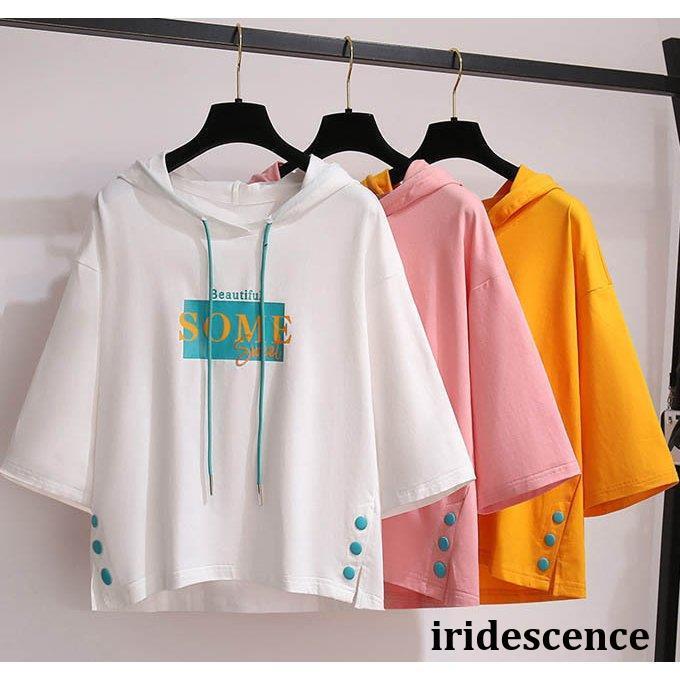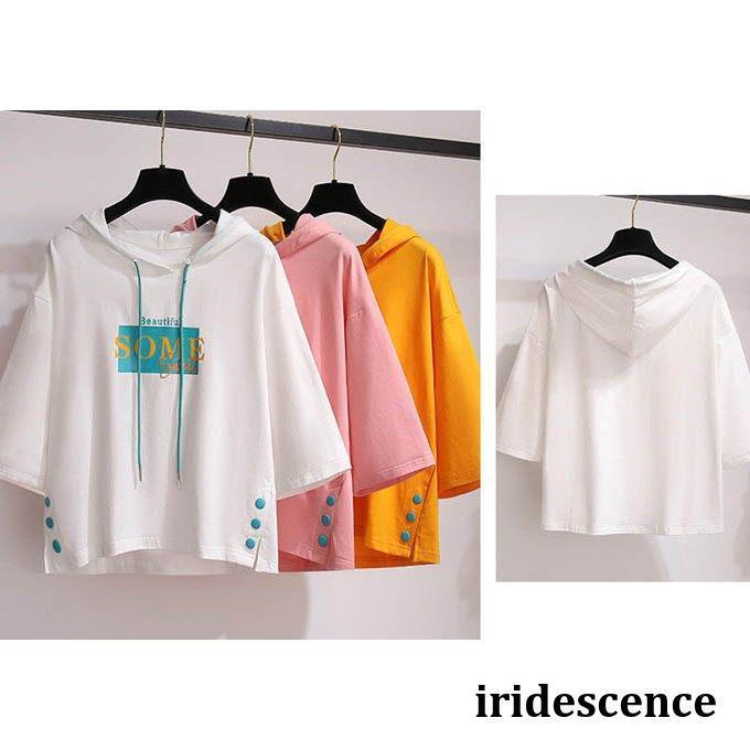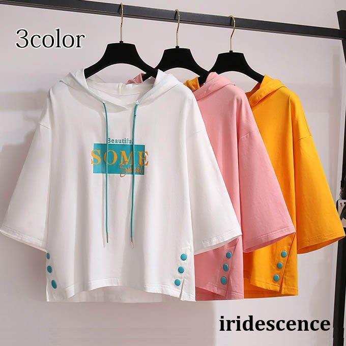 Tシャツ ゆるTシャツ フード付き 五 レディースファッション 人気 ホワイト ピンク イエロー M L XL 2XL