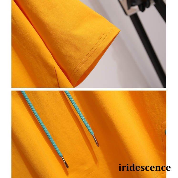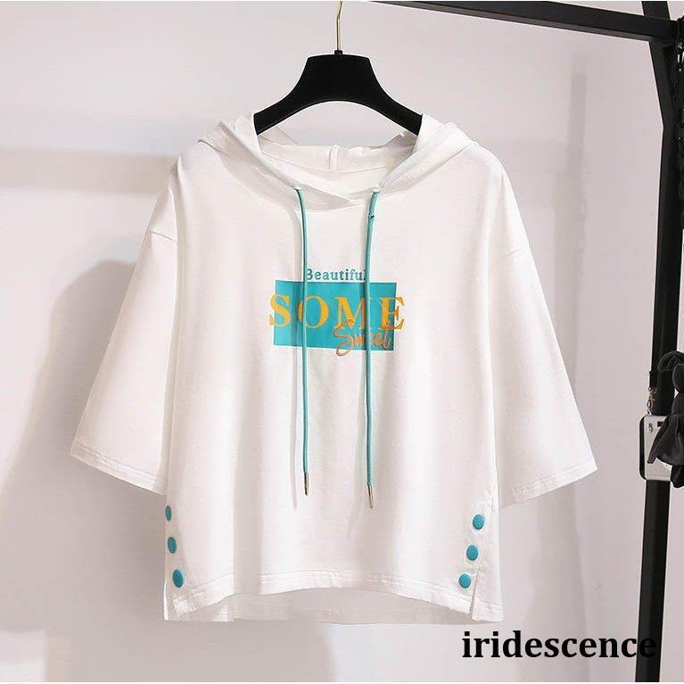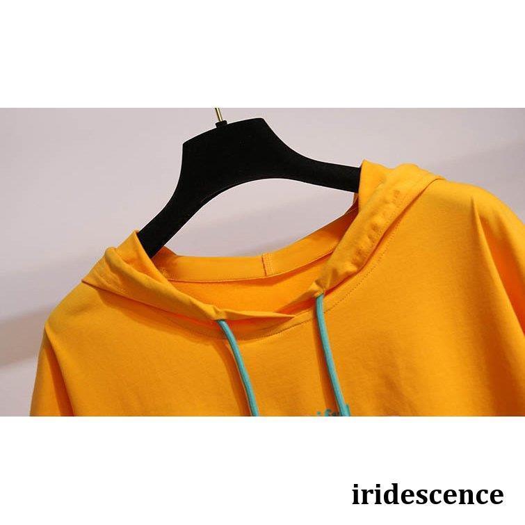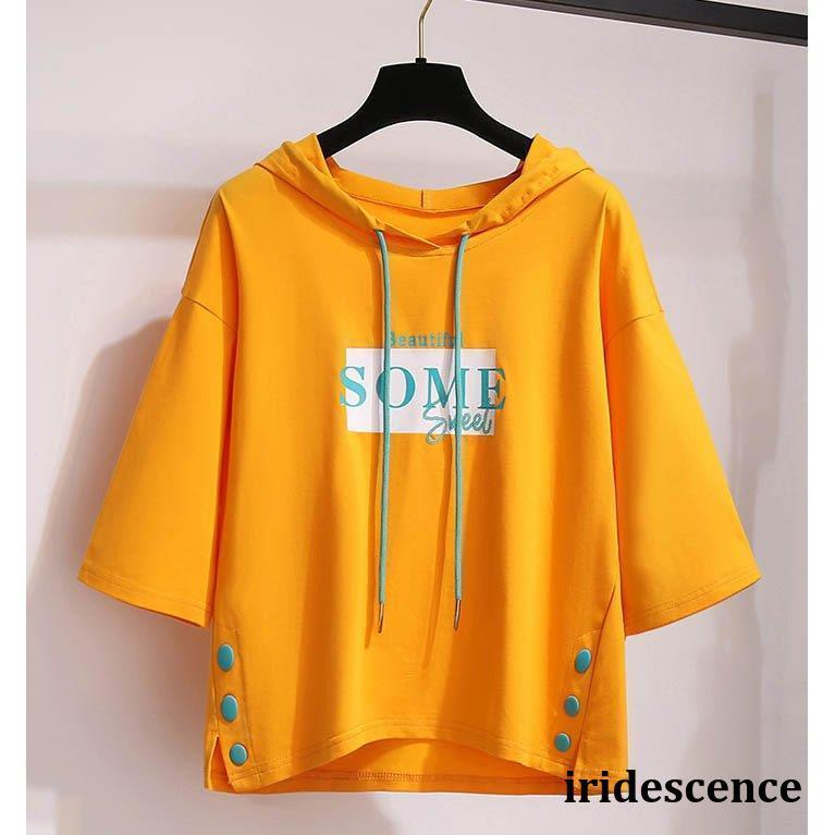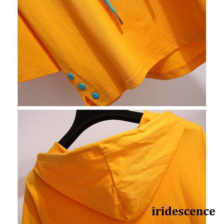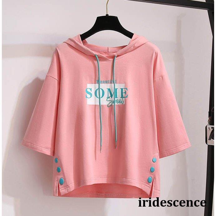 Tシャツ ゆるTシャツ フード付き 五 レディースファッション 人気 ホワイト ピンク イエロー M L XL 2XL